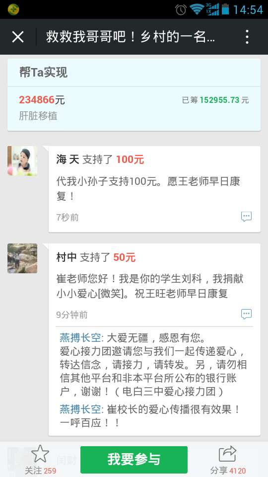 【捷报频传】感谢各界热心人士对我校王旺老师的关注和帮助,其肝脏移植手术将定于今天下午进行,请与我一起祈祷吧,另,因医疗费用仍有缺口,请您再给力一把,不管是捐款还是转发,都是功能无量!!