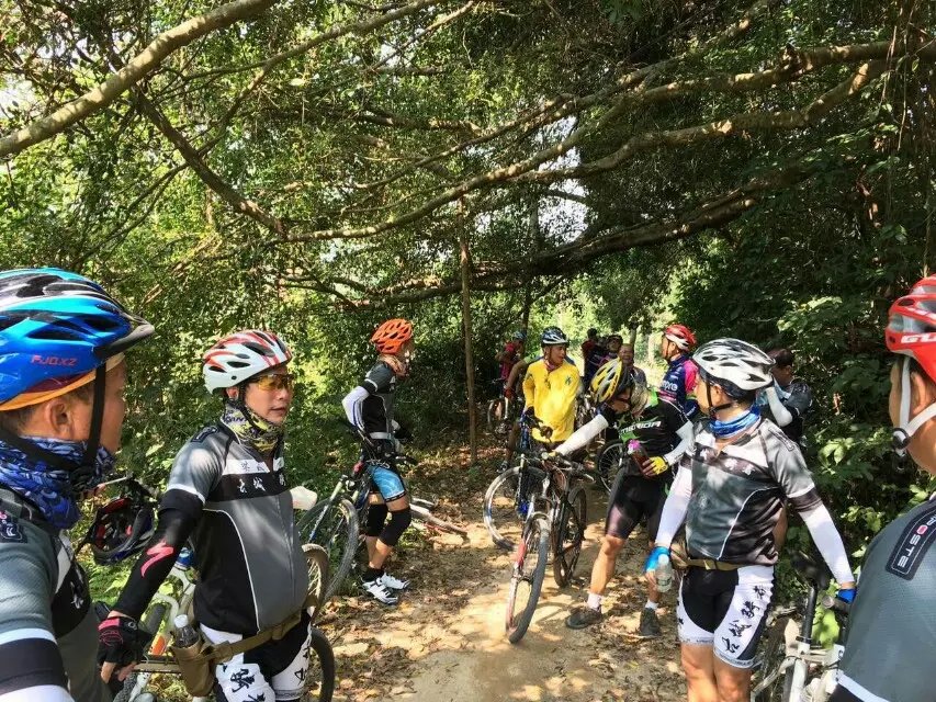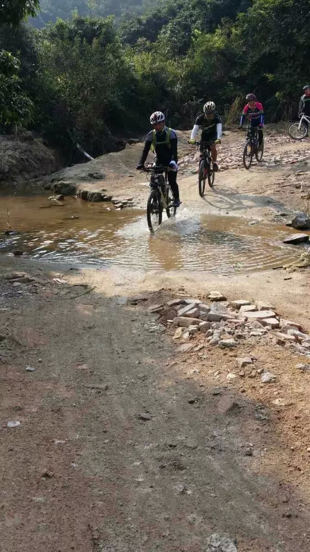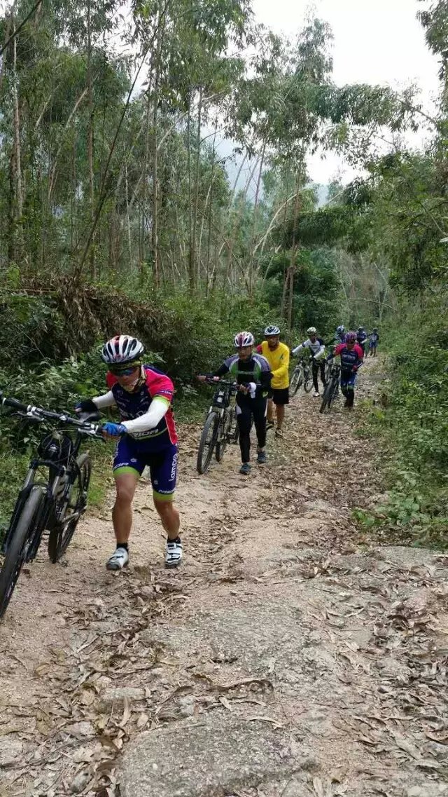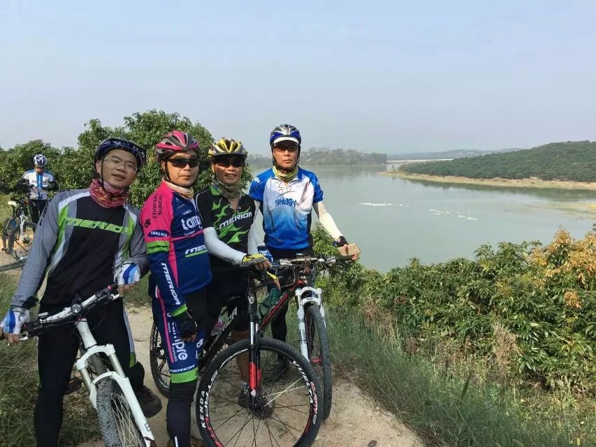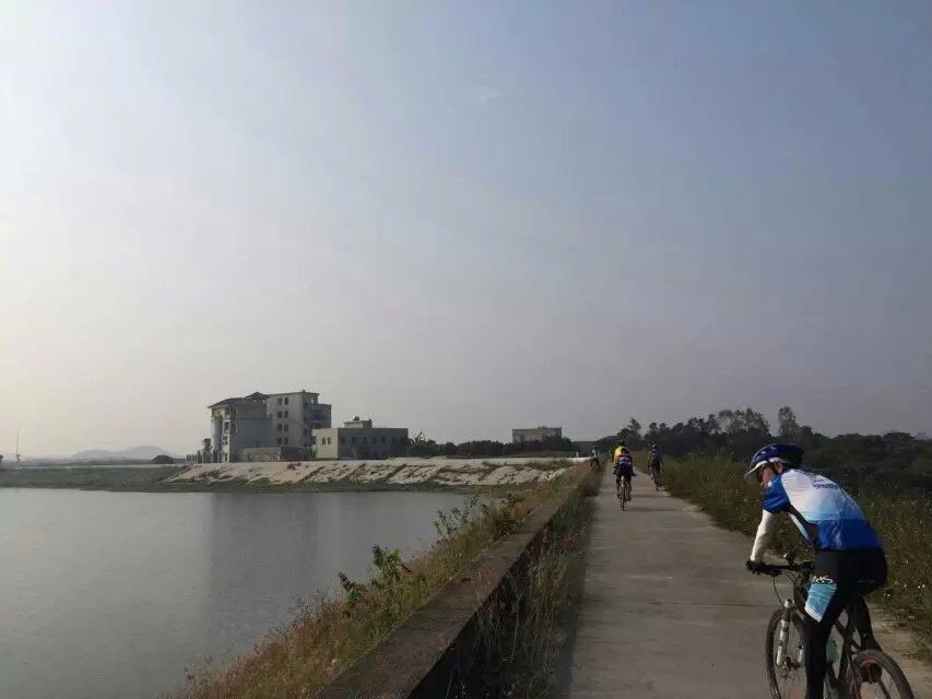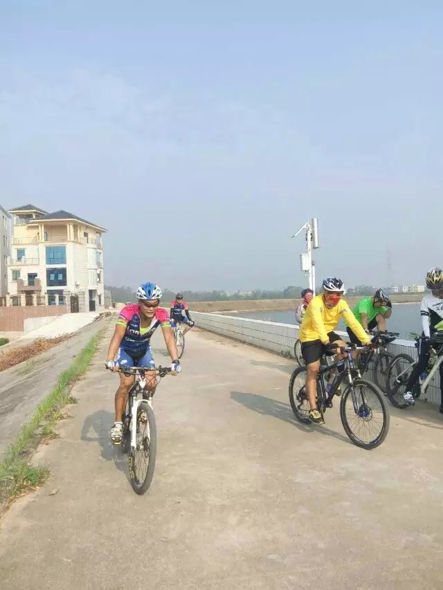 早上8时30分,骑行队伍迎着朝阳,从水东美利达自行车专卖店出发,走乡道经七迳镇蓝田坡,旦场镇平湖,穿越麻岗镇热水、石苟,观珠镇大水坡,马踏镇的联群、石古湾、天星,到达树仔镇茶山村委会石板村,然后走国道从树仔经麻岗、旦场、陈村回水东,途经电白几大水库,包括河湾水库、秀田水库、热水水库、旱平水库等,一路迎来朝阳,送走夕阳,披星戴月才平安归来,虽然艰辛却大饱眼福。