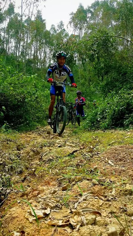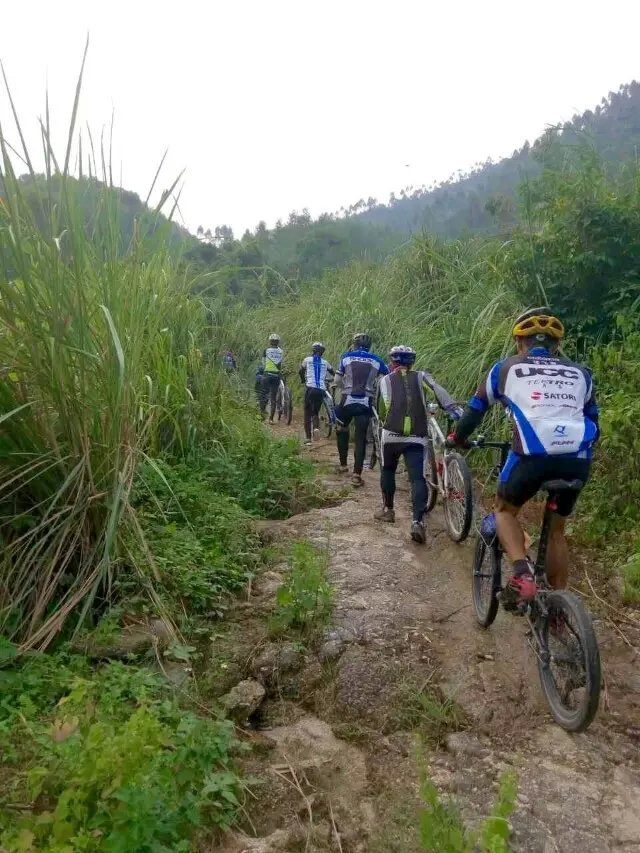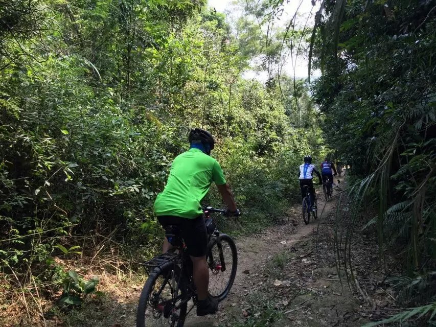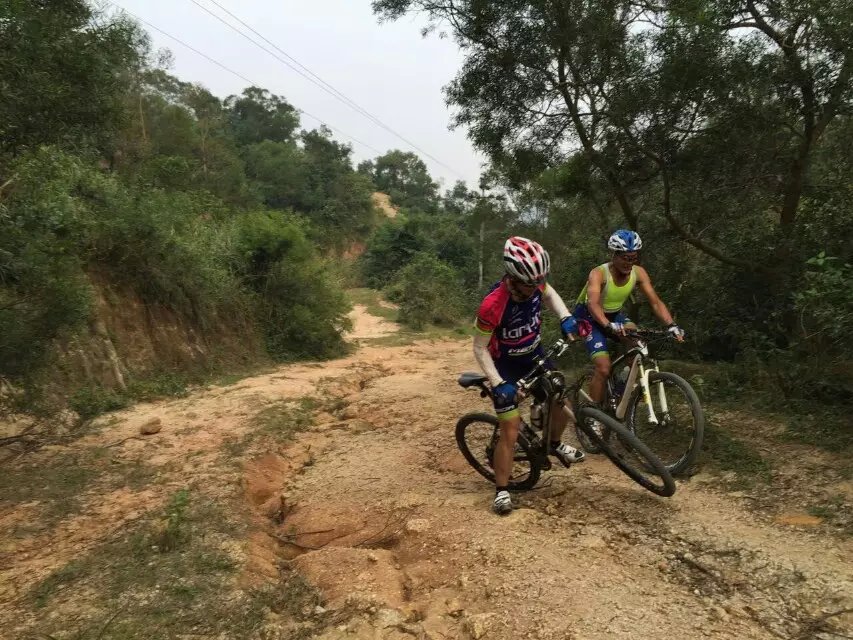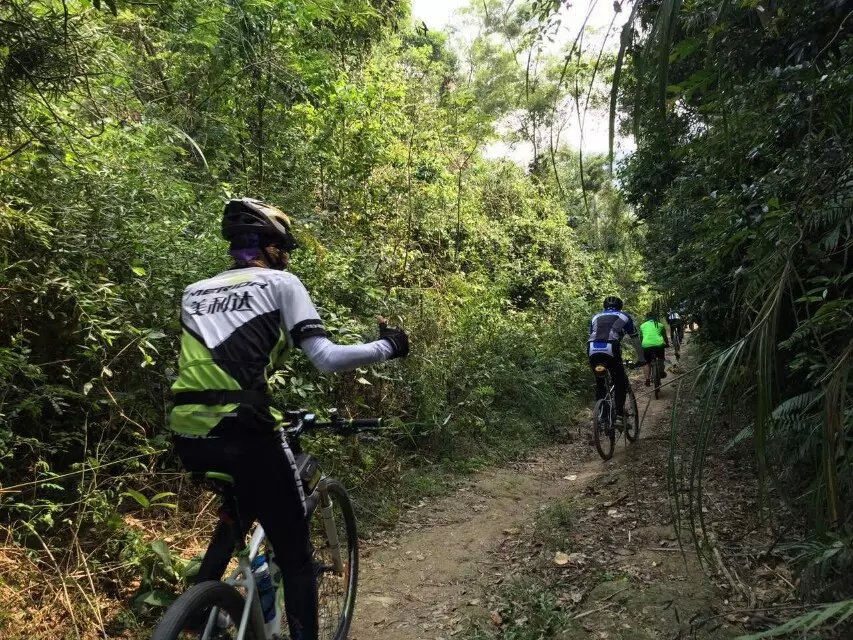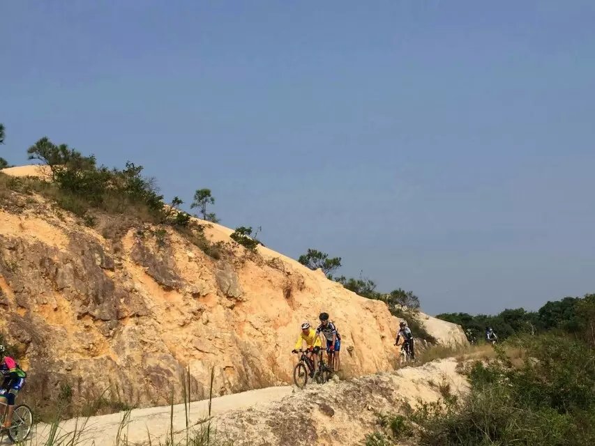 早上8时30分,骑行队伍迎着朝阳,从水东美利达自行车专卖店出发,走乡道经七迳镇蓝田坡,旦场镇平湖,穿越麻岗镇热水、石苟,观珠镇大水坡,马踏镇的联群、石古湾、天星,到达树仔镇茶山村委会石板村,然后走国道从树仔经麻岗、旦场、陈村回水东,途经电白几大水库,包括河湾水库、秀田水库、热水水库、旱平水库等,一路迎来朝阳,送走夕阳,披星戴月才平安归来,虽然艰辛却大饱眼福。
