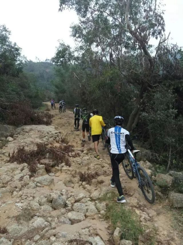 下午3时半,经过休整补充能量,精简的联军17人向铁板村进军,经马踏镇天星入树仔镇。果然,搬迁后的石板村,不但乱石遍地,而且道路有些被山泥吞没,有些被雨水冲刷而沟渠满布,骑行在这只是不长草的路,可谓脚脚惊心,连沙场老将小江、庭长都挂彩而归,虽无大碍但印象深刻。大部队历尽艰险,终于到了铁板村,但见渺无人烟,房屋破烂,当年屋主在门前种植的柚子,因缺乏水分,虽澄黄却非常酸涩,南瓜因没有施肥,显得非常瘦小暗色,远处的坡地久无耕种而长满青草,此情此景,不禁让人特别伤感,唏嘘不已。