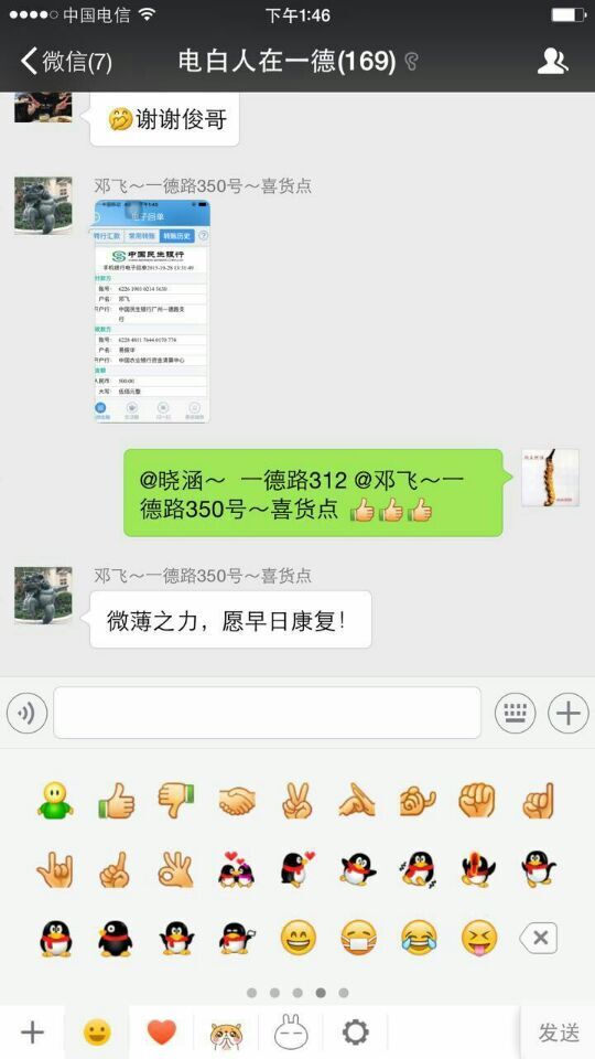 刚刚有个清远的女客户,之前找我预测过运气,她看到我在微信上发的消息,说也要捐点钱。