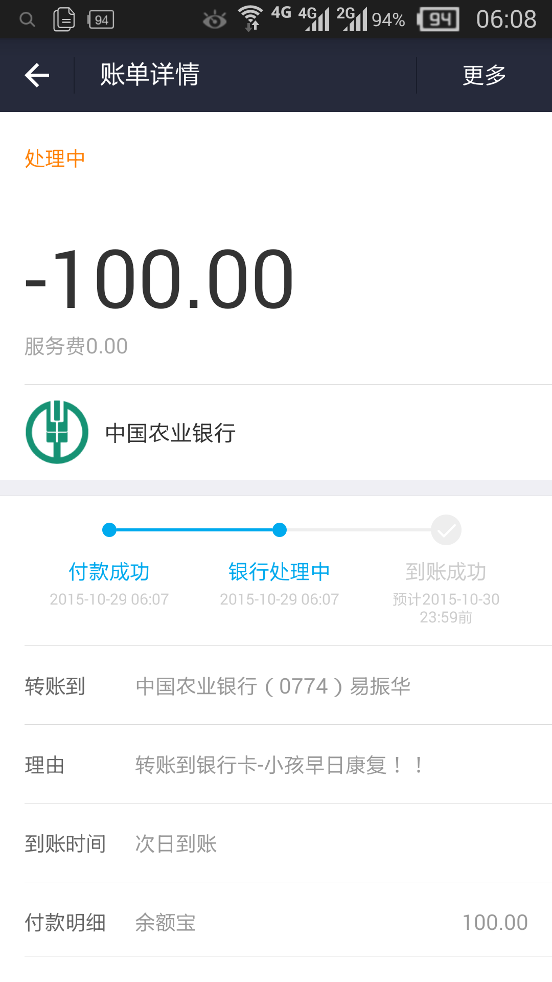 已通过支付宝转入101元,请查收,祝小雯诗早日康复!