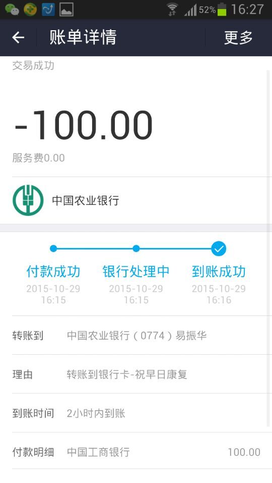 已转入100元,请查收,祝小雯诗早日康复!也预祝我们的王旺老师今天下午手术成功!天佑好人!