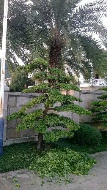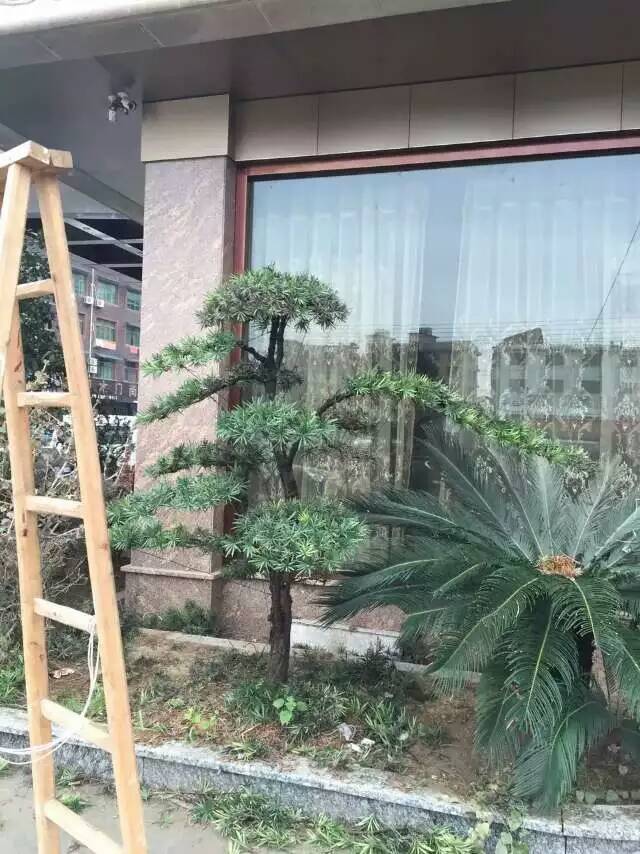 罗汉松神韵挺拔、清雅,横空显示出一种朴实稳重雄浑苍劲的傲然气势;树型招展,像宽容大度的主人,挥展双臂,笑迎宾客,谦送友人,以不尽的仙来之韵契合着人们的心境。