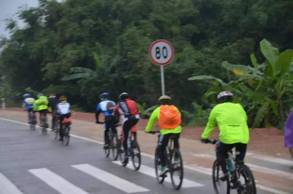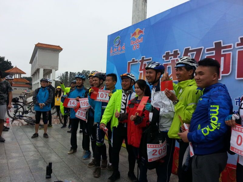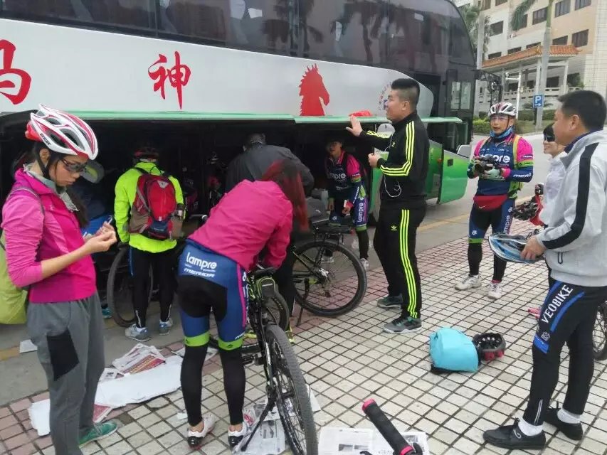 早上7时,天色灰蒙,气温只有18度,但紧张的拆车、装载使现场气氛活跃不少,特别是乘车途中娟娟的精彩主持,25位车友诙谐的自我介绍,让陌生的面孔距离拉近了,因为我们都有同一兴趣,同一理念。9时半,大巴到了高州长坡镇,急弛中的野战军也飞奔而至,一马当先的彦,神行太保春华,破风小子艺哥,无坚不克的懒从,统领千军的聪哥,还有,快马加鞭的吴镇,一往无前的麦苗,气吞万里的水一方等11位骑友,个个精神饱满,激情无限,让车上的轻骑羡慕不已,欢呼声、喝彩声不绝于耳。