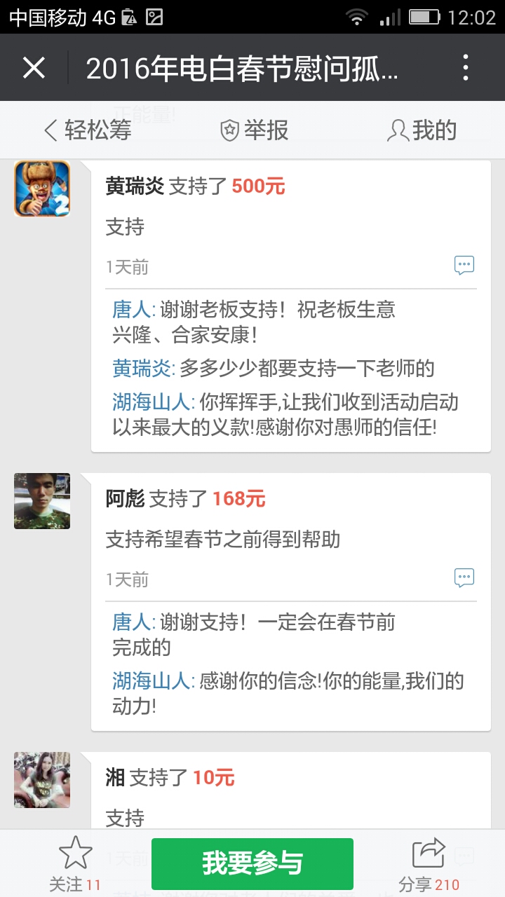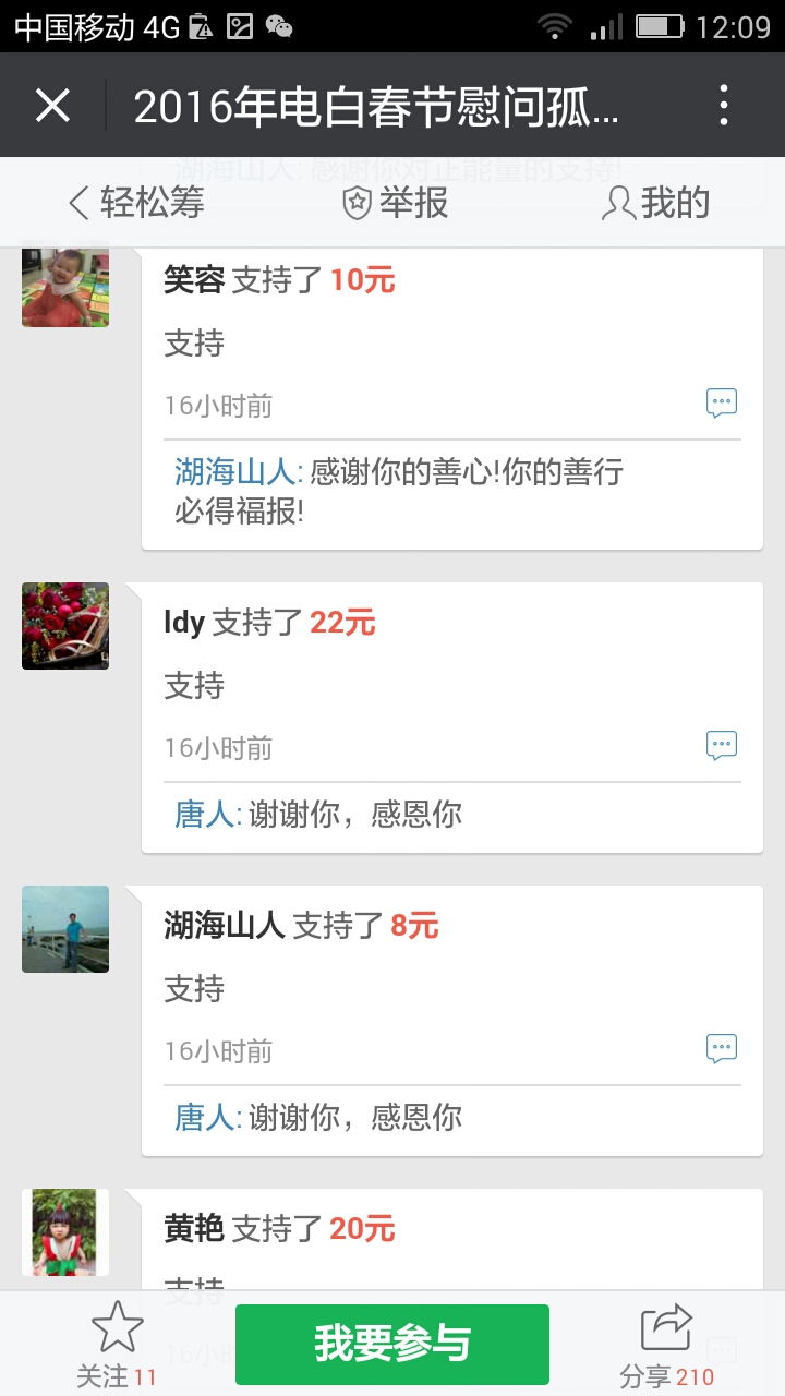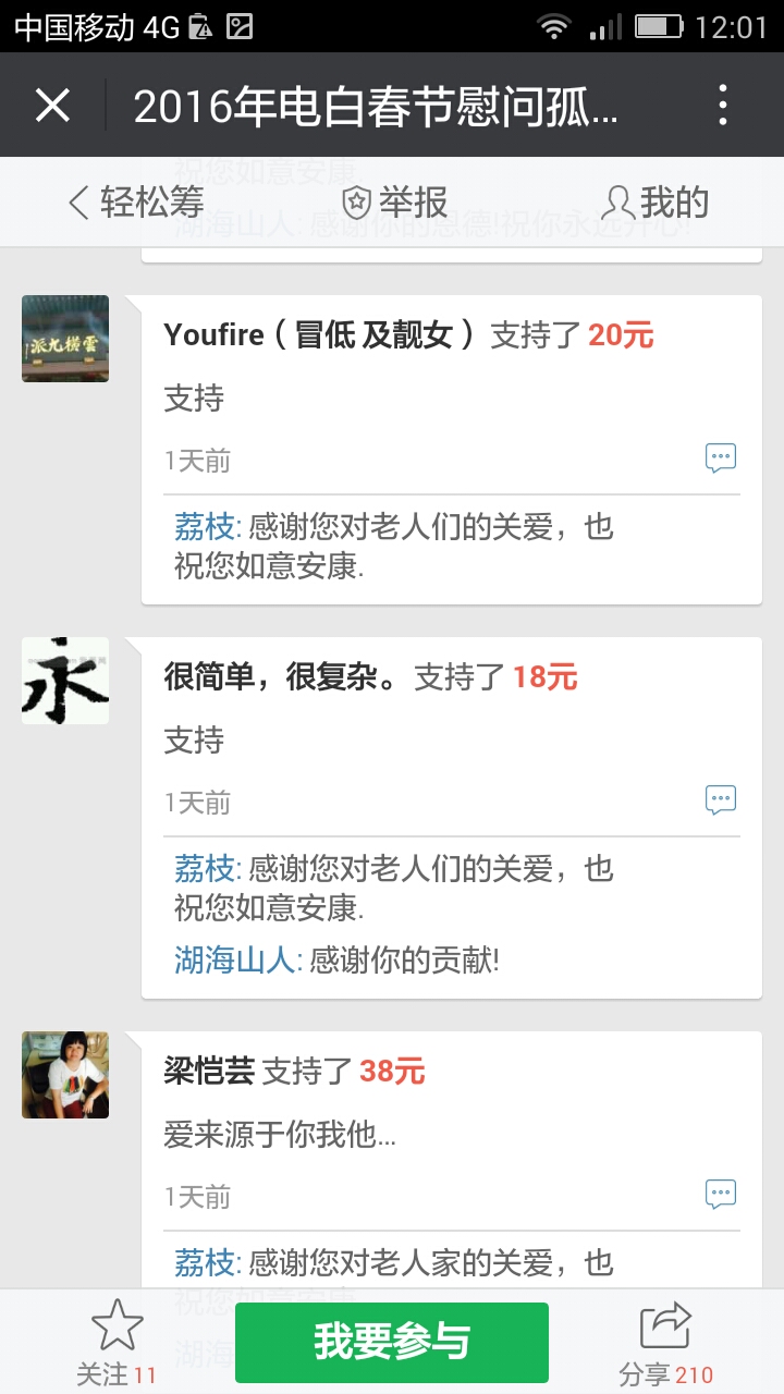 我们收到第三个500元,,这是网名太阳花在轻松筹上献出的爱心。