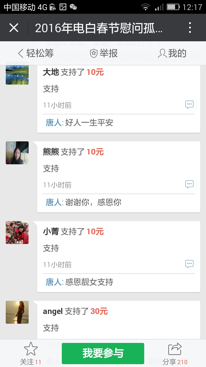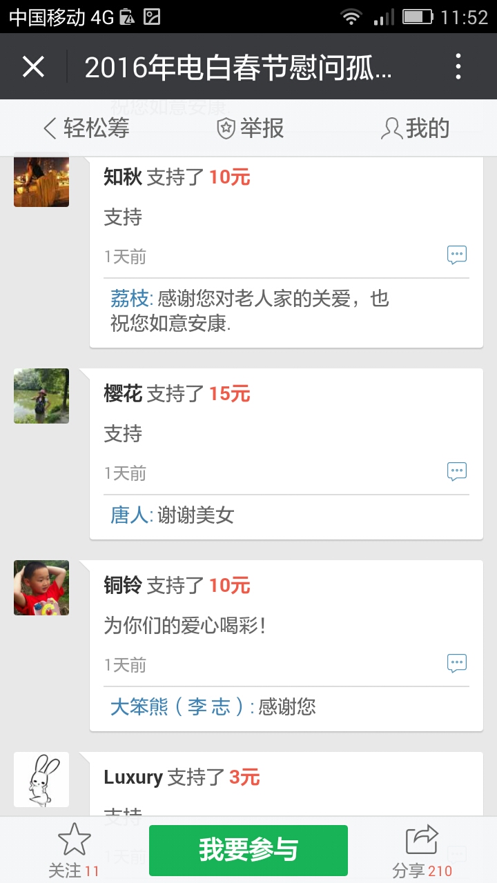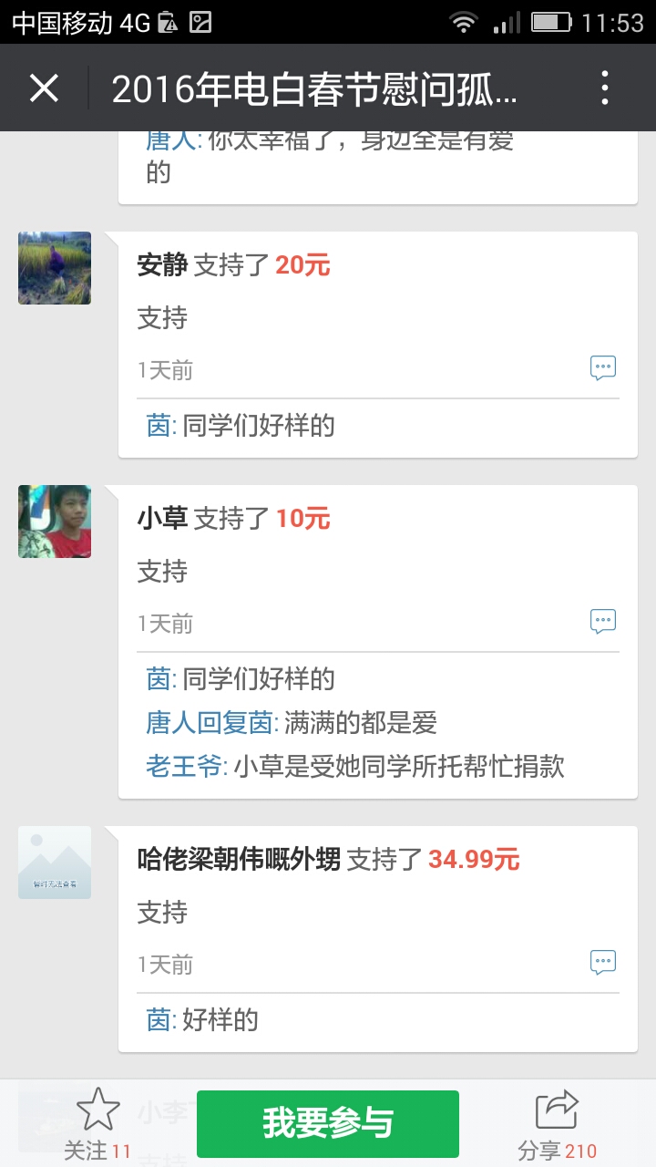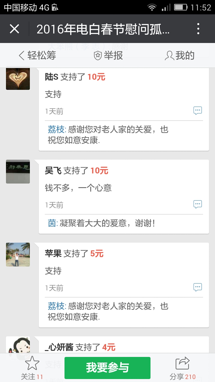 我们收到第三个500元,,这是网名太阳花在轻松筹上献出的爱心。