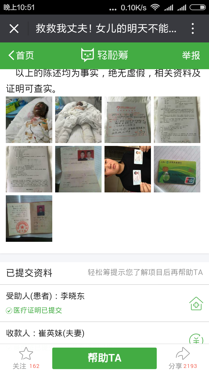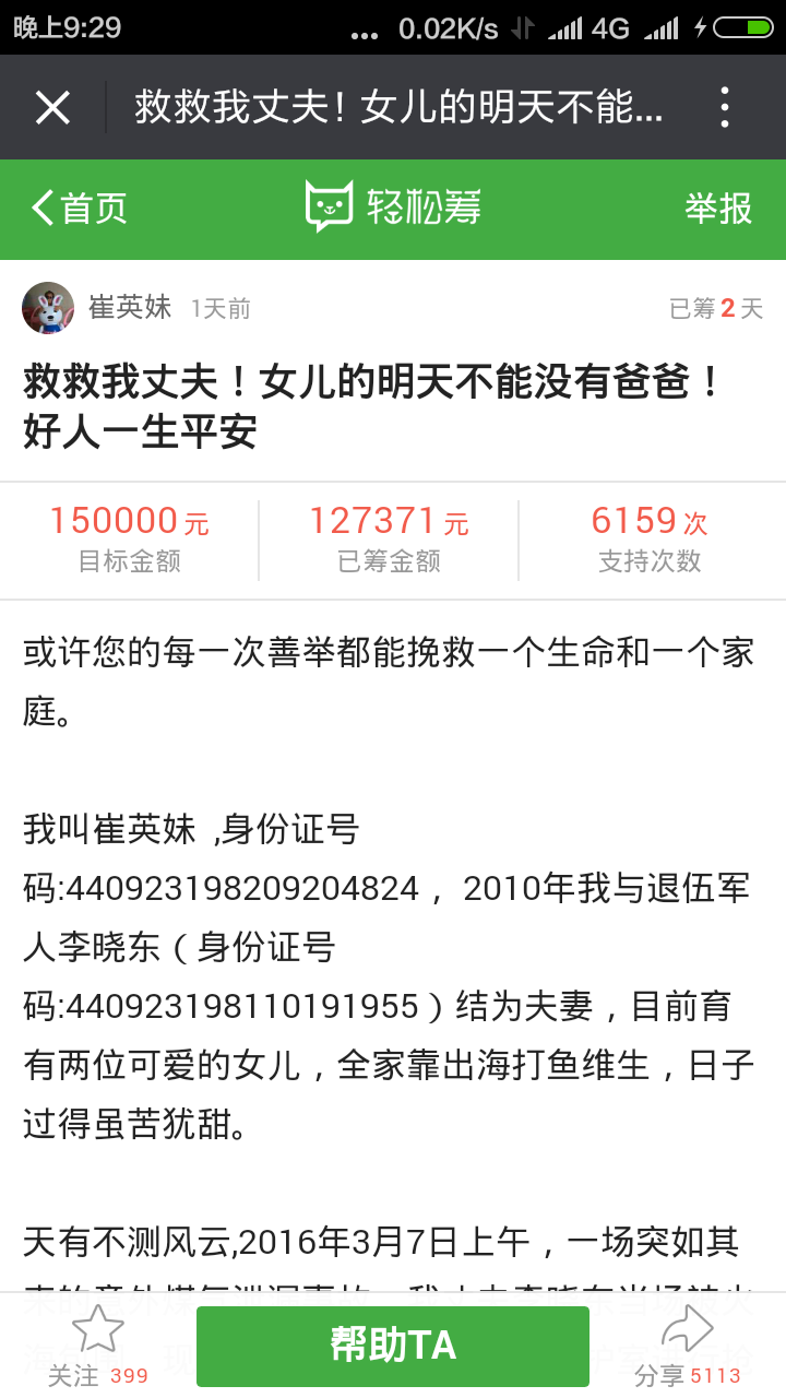 目前我的两个女儿,大的四岁,小的才两岁,女儿的明天不能没有爸爸!只要有一线生机,我们绝不能放弃!