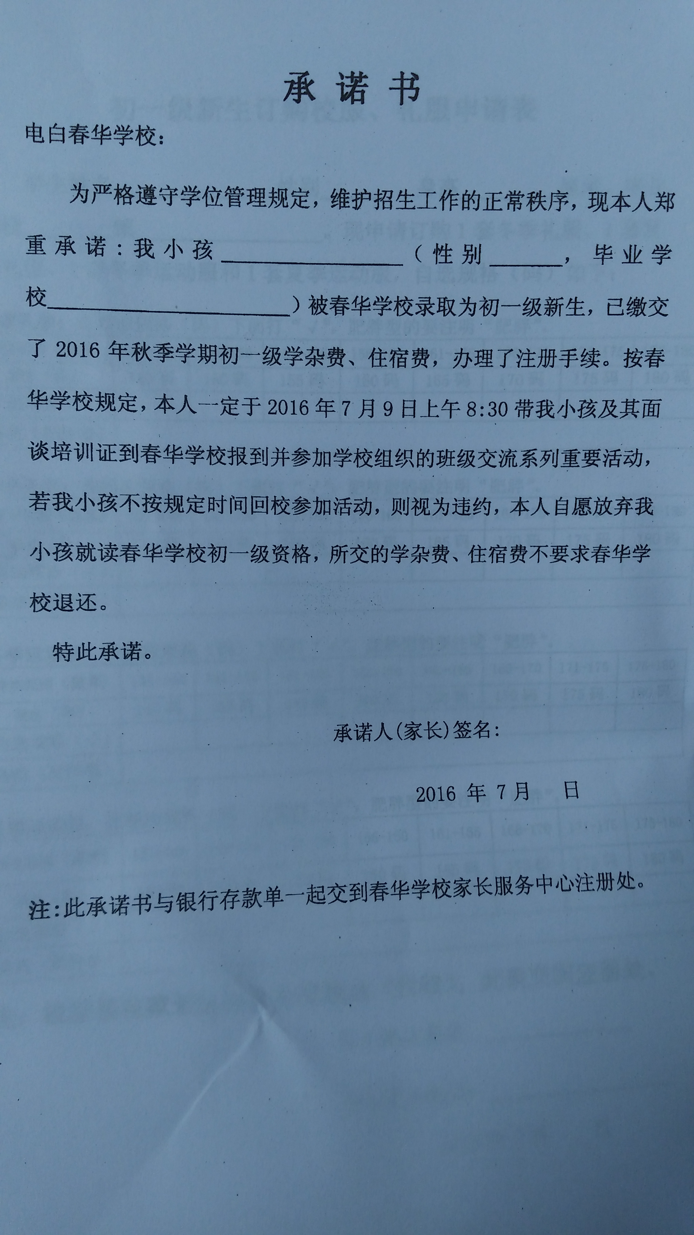 今天春华学校通知:明天初一新生注册,2016年7月9日全体初一新生注册参加培训,如果7月9日没有参加春华学校的培训就取消资格。2016年7月9日是电白一中附中招生考试,春华学校利用阴毒手段制着电白一中附中,让各家长和学生选择进退两难。电白教育管理,真是悲剧!
