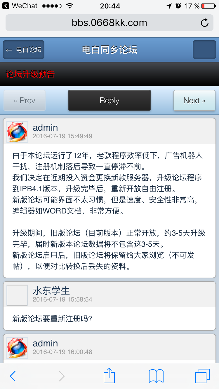 admin 管理员 管理员 注册 2004-08-16 消息 639 反馈评分 335 点数 131 性别 男 2016-08-07 #47 wxzhan 说: 恭喜恭喜,,终于升级成功了,只是访问速度现在还是好慢好慢的样子,是太多人在上论坛吗?容量带宽不够?? 点击展开... 目前是使用临时服务器,带宽和资源都有限制, 约10天左右启用正式服务器,到时就正常了。