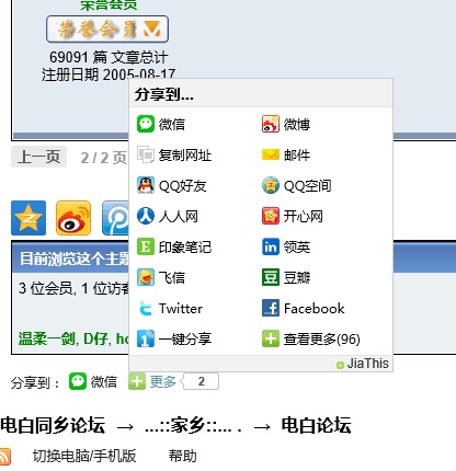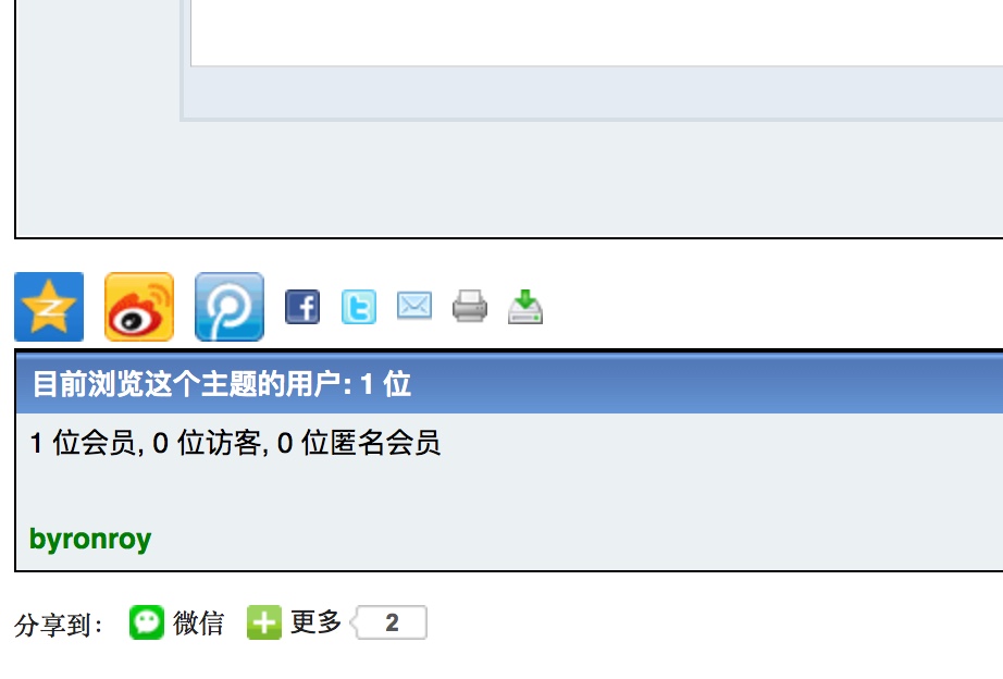 MingNi 说: 已修正,帖子下方新增微信、QQ空间、新浪微博、腾讯微博等分享链接,保留facebook、twitter分享。 点击展开... 没微信分享功能,其它的有。 在非完整编辑器下回复,无法自动跳转到最后的帖子。