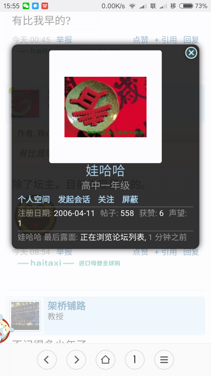 娃哈哈 大学三年级 注册 2006-04-11 消息 818 反馈评分 78 点数 11 2016-12-05 #82 好讲风凉话 说: 在下注册成为论坛会员时间是2005年6月。 点击展开... 好久不见了