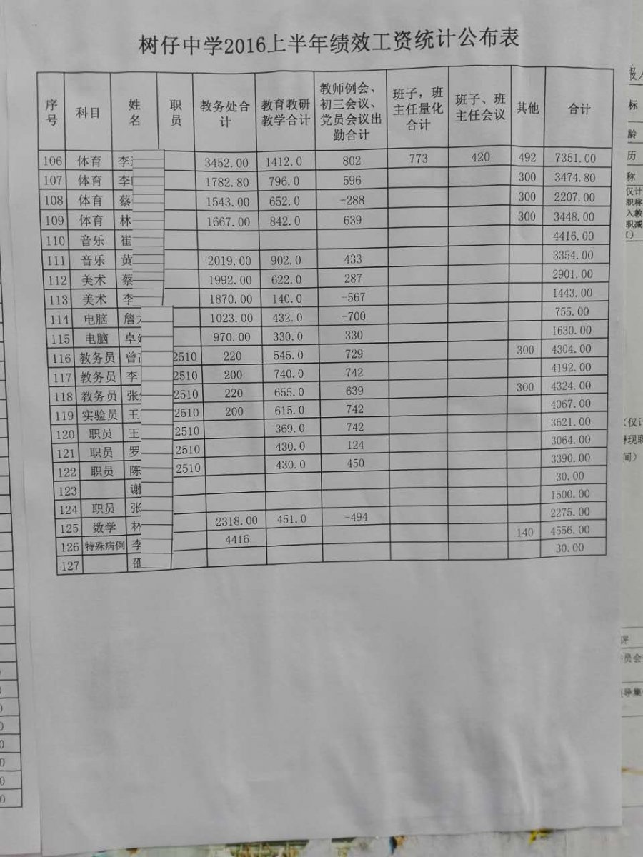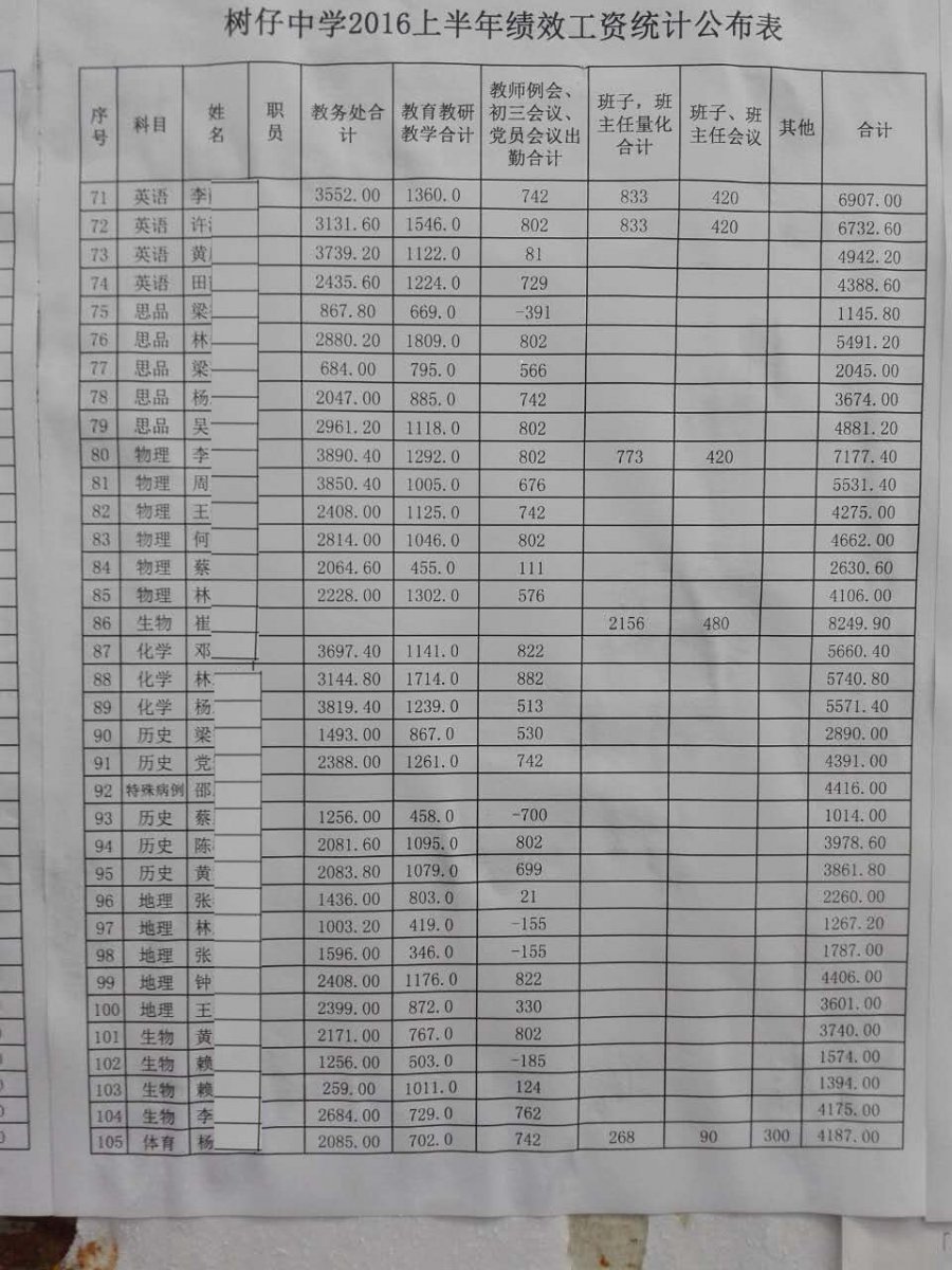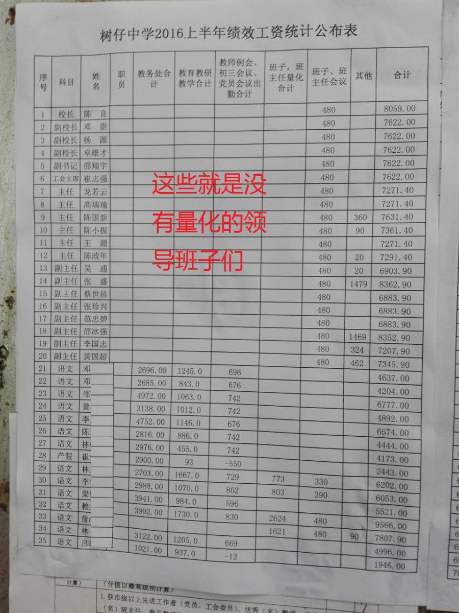 核对?你们的方案都是你们说了算的!关于树仔中学绩效工资公示情况说明: