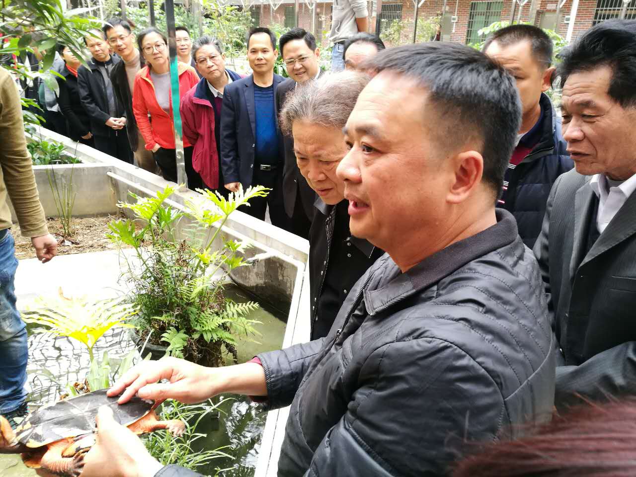 在星火水产养殖有限公司,董事长杨火廖向考察组一行汇报了自己创业经历及公司发展情况。经多年发展,星火水产养殖有限公司已发展成为占地面积175亩,年产值超1亿元的龟鳖养殖示范场。近年来,星火水产养殖有限公司先后投入1400万元建设培训基地,举办水产培训班56期,对当地村民、农村创业青年、复退军人和下岗职工近10000多人次进行培训,为农村脱贫致富作出了贡献,被评为“茂名市农村创业青年培训示范基地”。张帼英对杨火廖创业历程和热心公益事业十分赞赏,鼓励其再接再励,在社会主义新农村建设中继续做好示范。