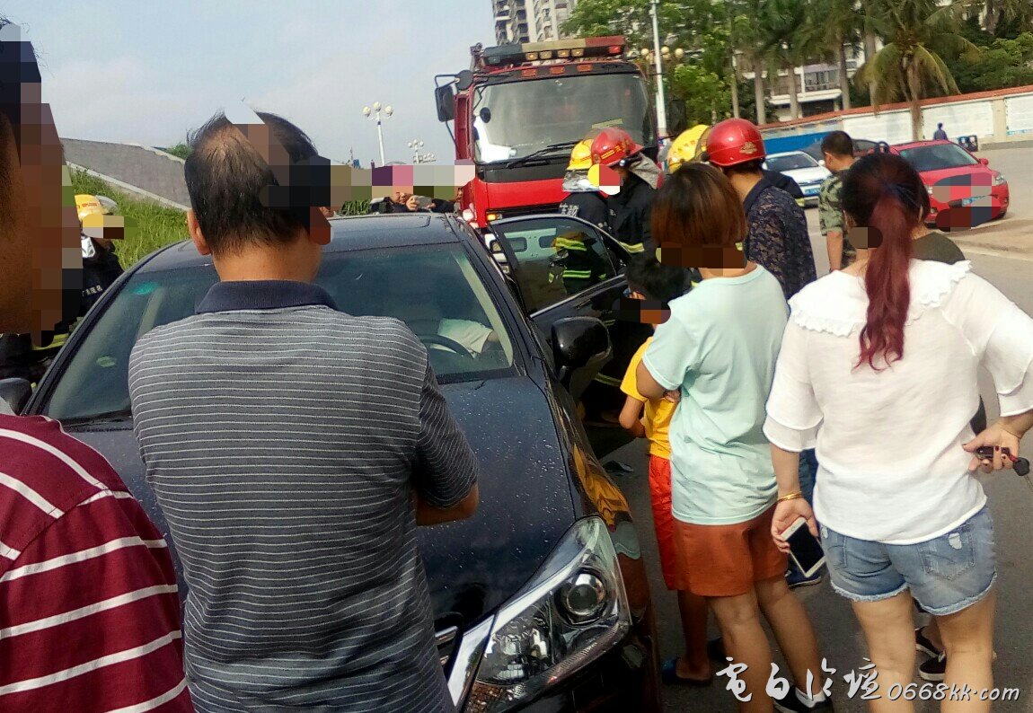 拟诂事发大概如下吧?:女事主驾车到海堤新城小学门囗对面路边,不知是送孩上学还是干什么?,诂是忽忙熄火,而车锁时则漏在车内,而车内拟见还有一小小孩在里面,后可能顺手关车门,可能此车有反锁功能吧,而自动反锁,(或许再出现以下图景),拟见当时很多围观群众也加入想办法提意见~等应救行列,诂事主情急下也报了警:再出现下图景像,看了这一幕,心里还算有点安慰,电白广大民众的好心肠,互助互爱!电白消防官兵的应急救援~~