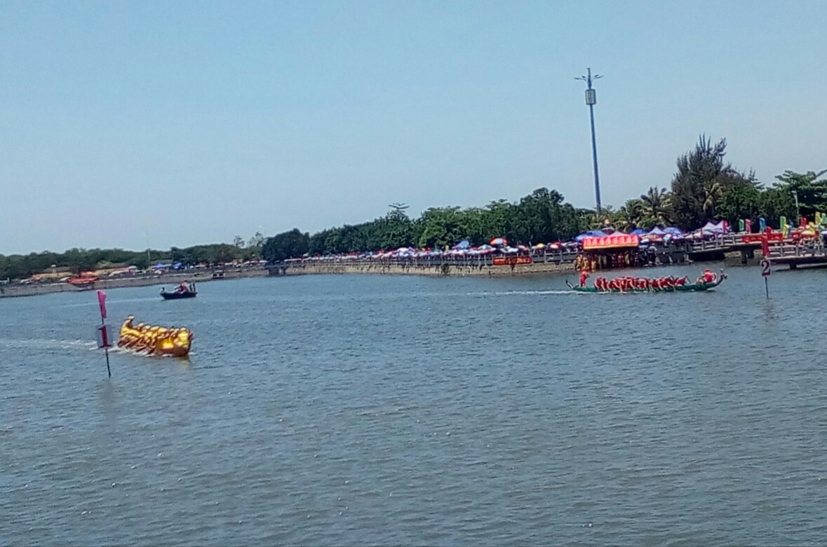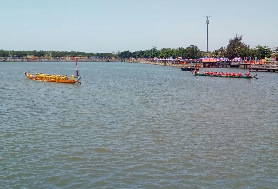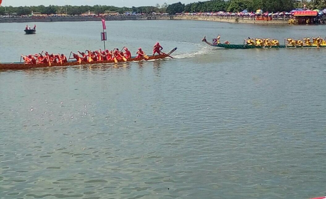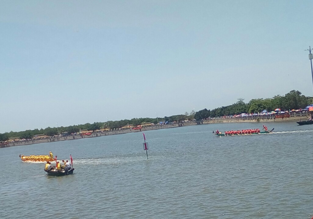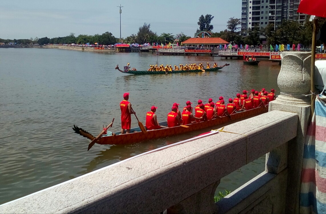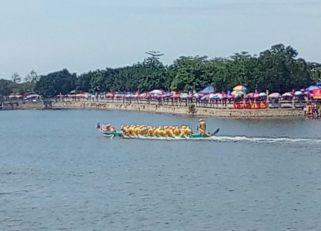 有些民众还不知已赛完,小孩问妈妈?(很多事物发生经过结束也就一点滴时间就过去了)希望那龙舟还能在湖心停留些少时间,就算没及时或不晓的民众拟感爱下看下都好:he: