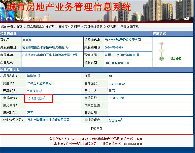 这个价格不太可能能卖出去,标来玩的吧!海滨大道的滨海湾一号,高的都超过1万了,均价9千,这是电白的房价吗?