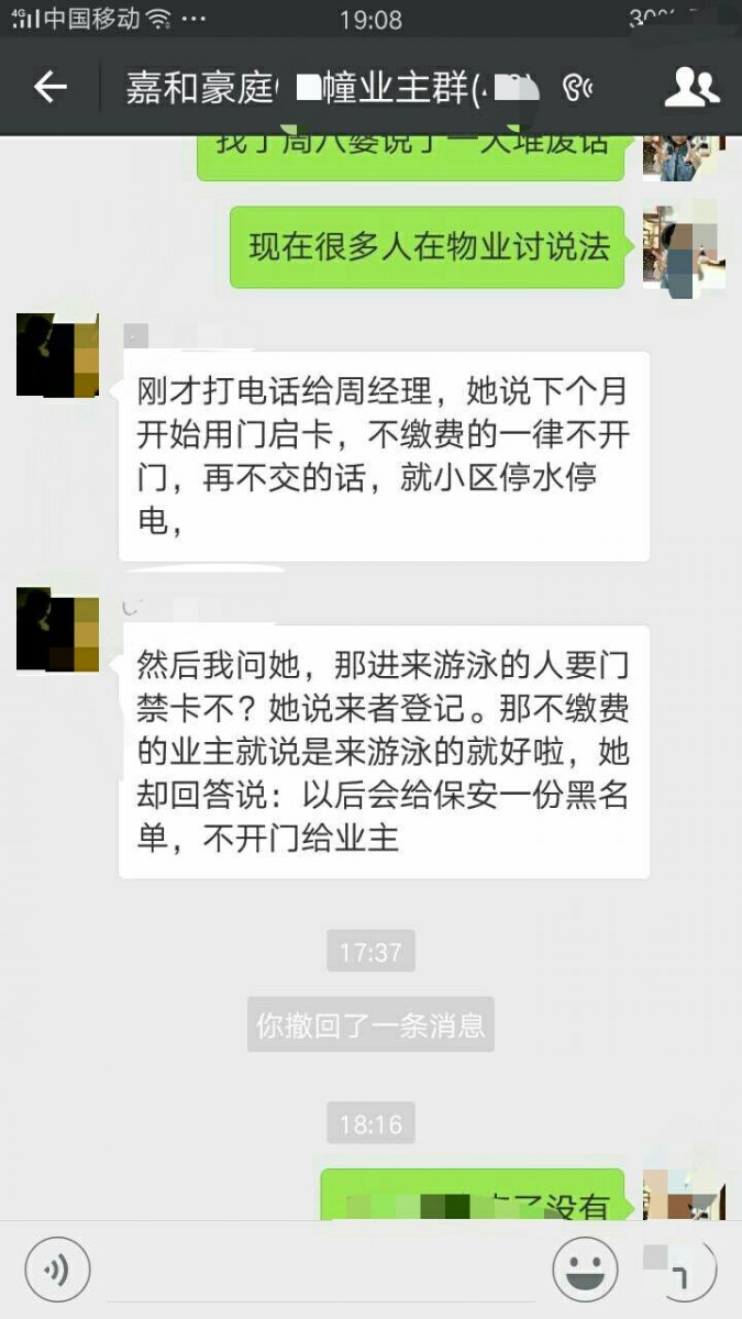 这聊天记录的截图充分说明物业管理公司的周经理(周女人)如何目无王法,如何践踏中华人民共和国宪法!