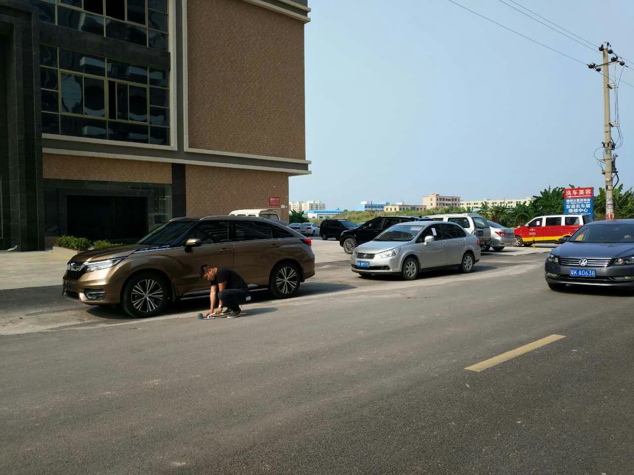 这个黑衣人就是茂名市电白区嘉和物业管理有限公司派去的,正在对停在公路的车辆贴警告信进行威胁恐吓。