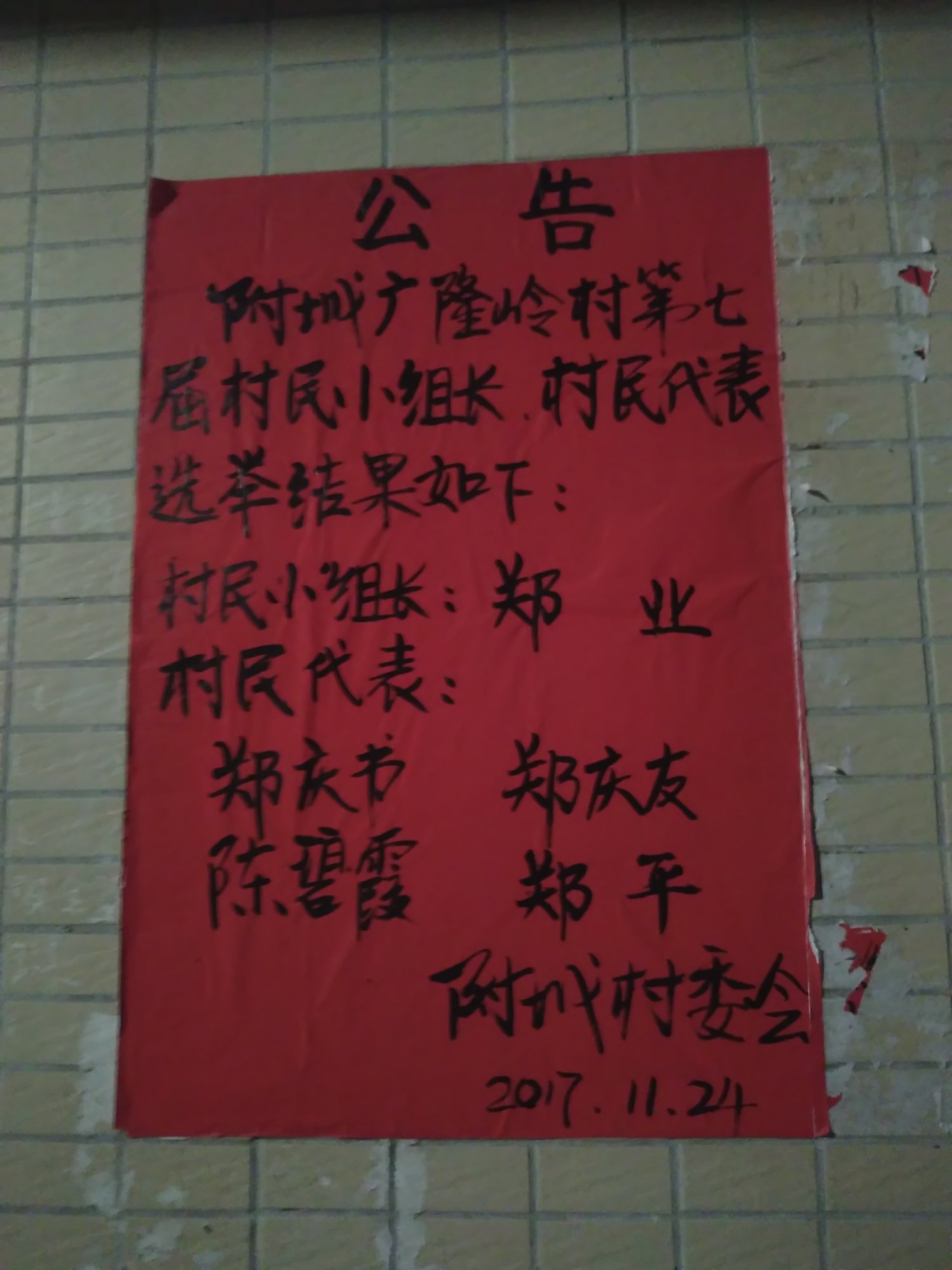 选举投票当晚,村民郑业以84票胜出,郑庆松49票。当晚谭书记没有到场,其他干部照旧出席。当晚还看到村霸郑壮到场参与投票,完后匆匆离开了。会议之后部分热血青年盘算去搞他,但后事暂时不知晓,下回得知再说。
