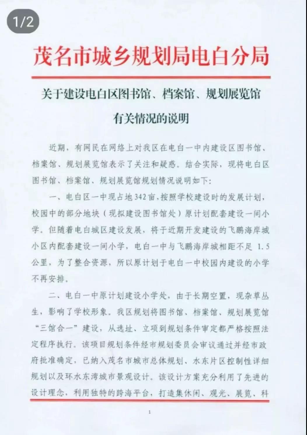 他们发问:偌大电白为何无建馆之地?非割电白一中教育用地?