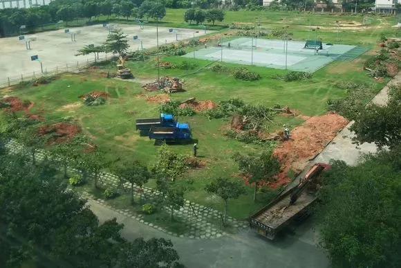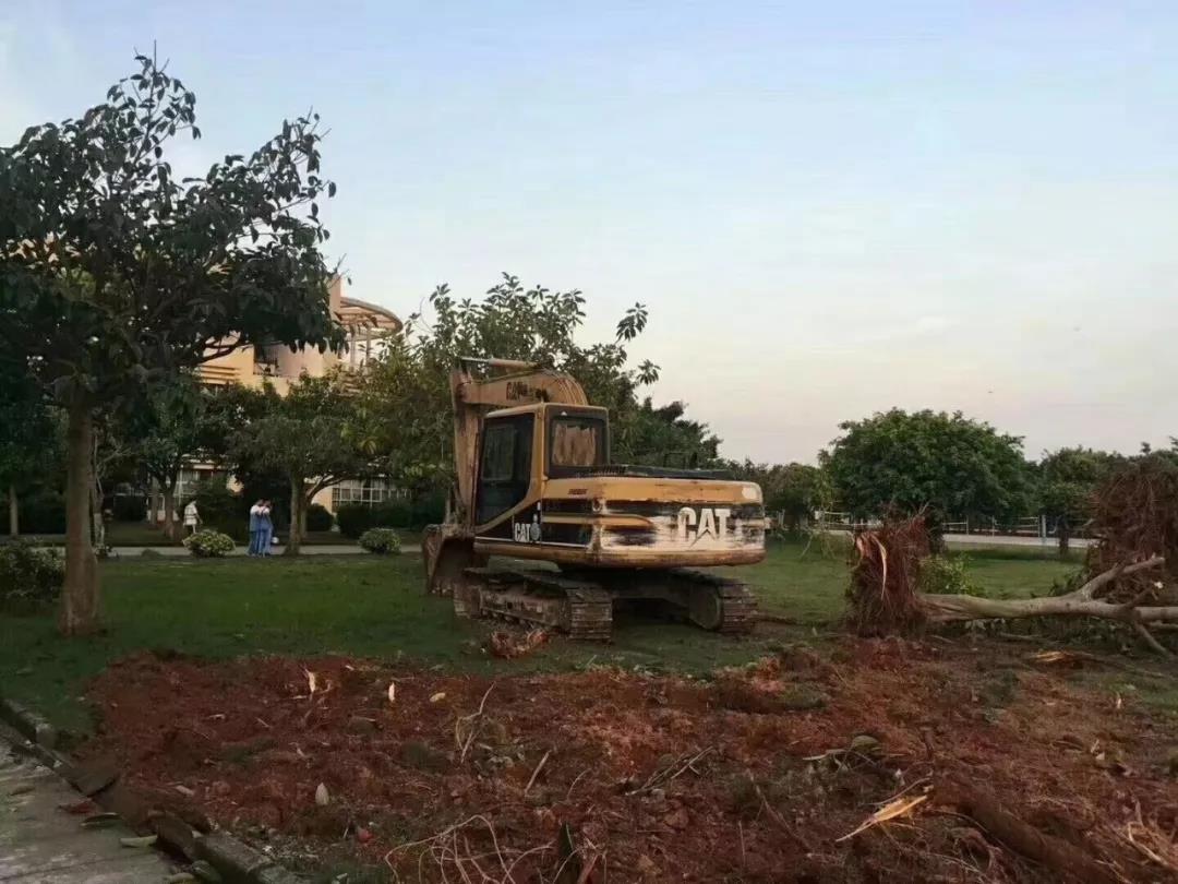 挖掘机开进了校园,树木被连根拔起!