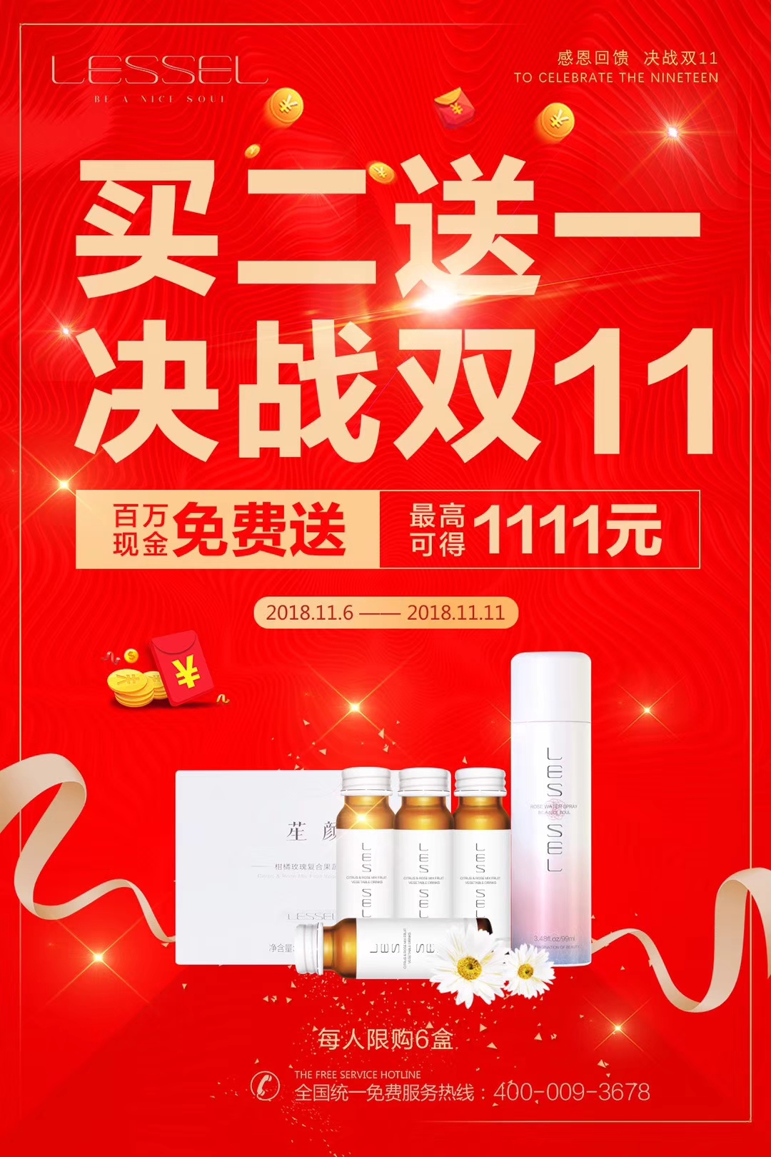 小 小牧云 幼儿园 注册 2018-11-08 消息 1 反馈评分 0 点数 0 2018-11-08 #1 LESSEL 莱斯欧 双十一正式开始,不用等到11号 全场买二送一 酵素、花水喷雾 全国统一免费服务热线:400-009-3678 附件 3.jpg 801.3 KB · 查看: 299