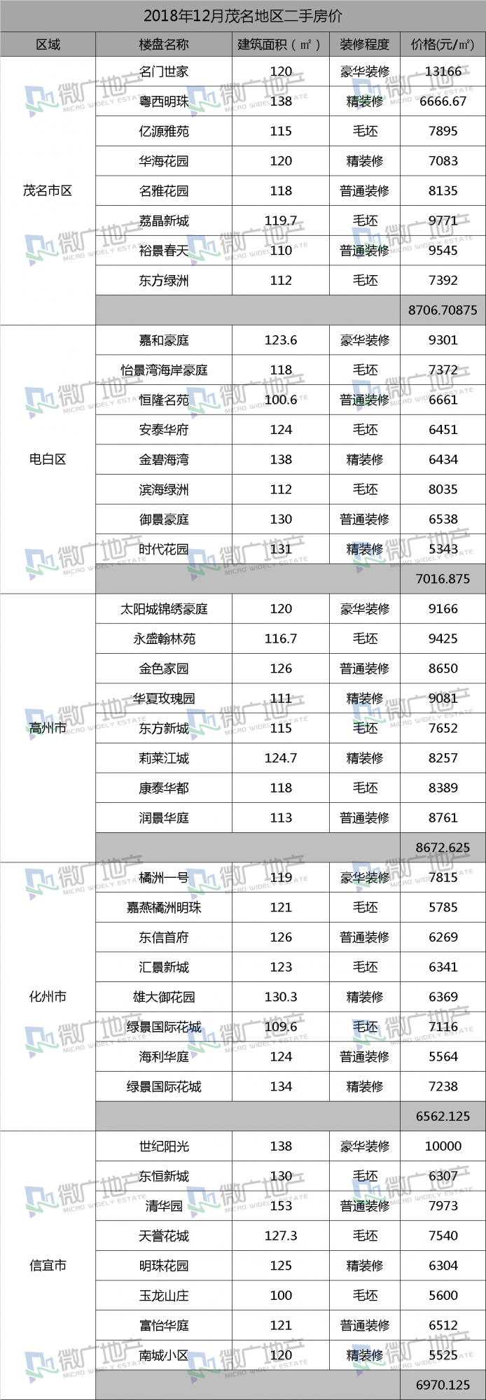 分享 2018年12月茂名地区二手房价一览表,哪个地方二手房价格最高?