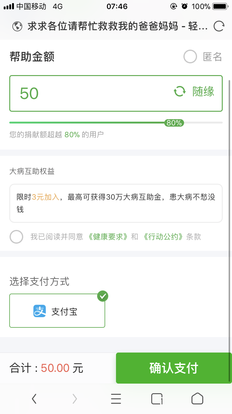 刚点击链接进去,发现轻松筹貌似只有支付宝一种支付方式,因没有支付宝,爱莫能助。