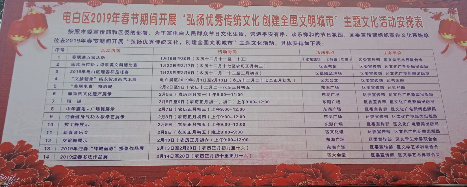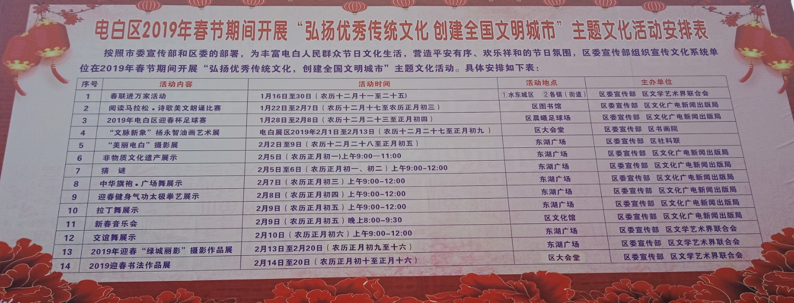电白区2019年春节期间开展.弘扬优秀传统文化.创建全国文明城市.主题文化活动安排表
