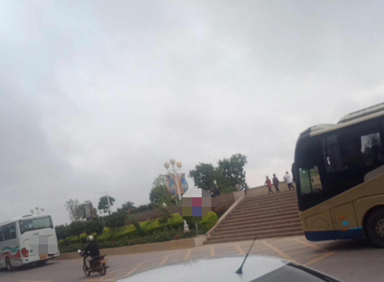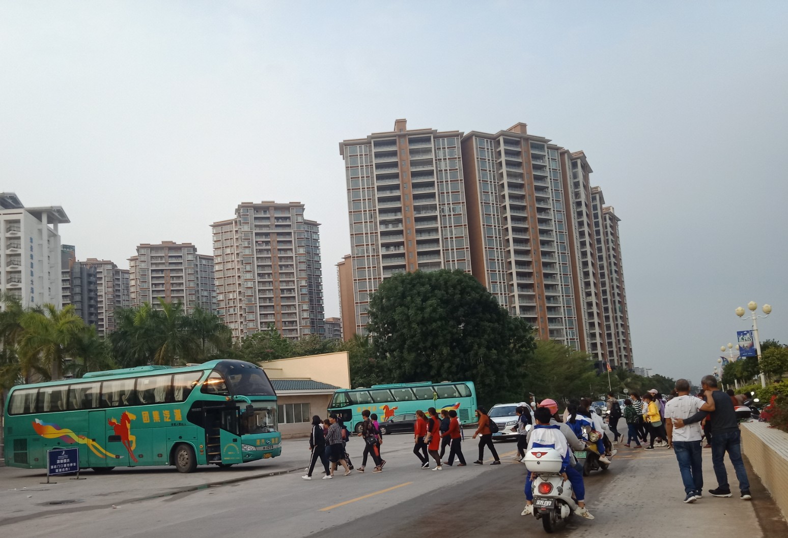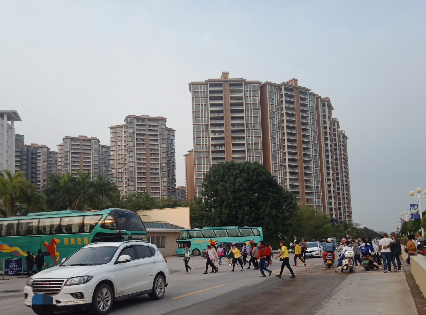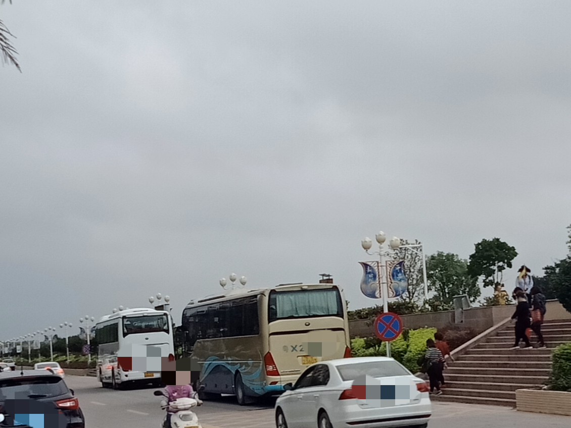 时间流逝大部分晨运的人也渐散去,瓦也下去拿摩,见有一俩辆大巴从海堤路过,也驾摩过那边吸吸,也不知从哪边来的,诂还会去一滩那边或浪漫放鸡岛等那边吧?这只是个中途站,但从这去两边好在也不远~ 过去亲水平台那边已见有三辆游巴停在那~