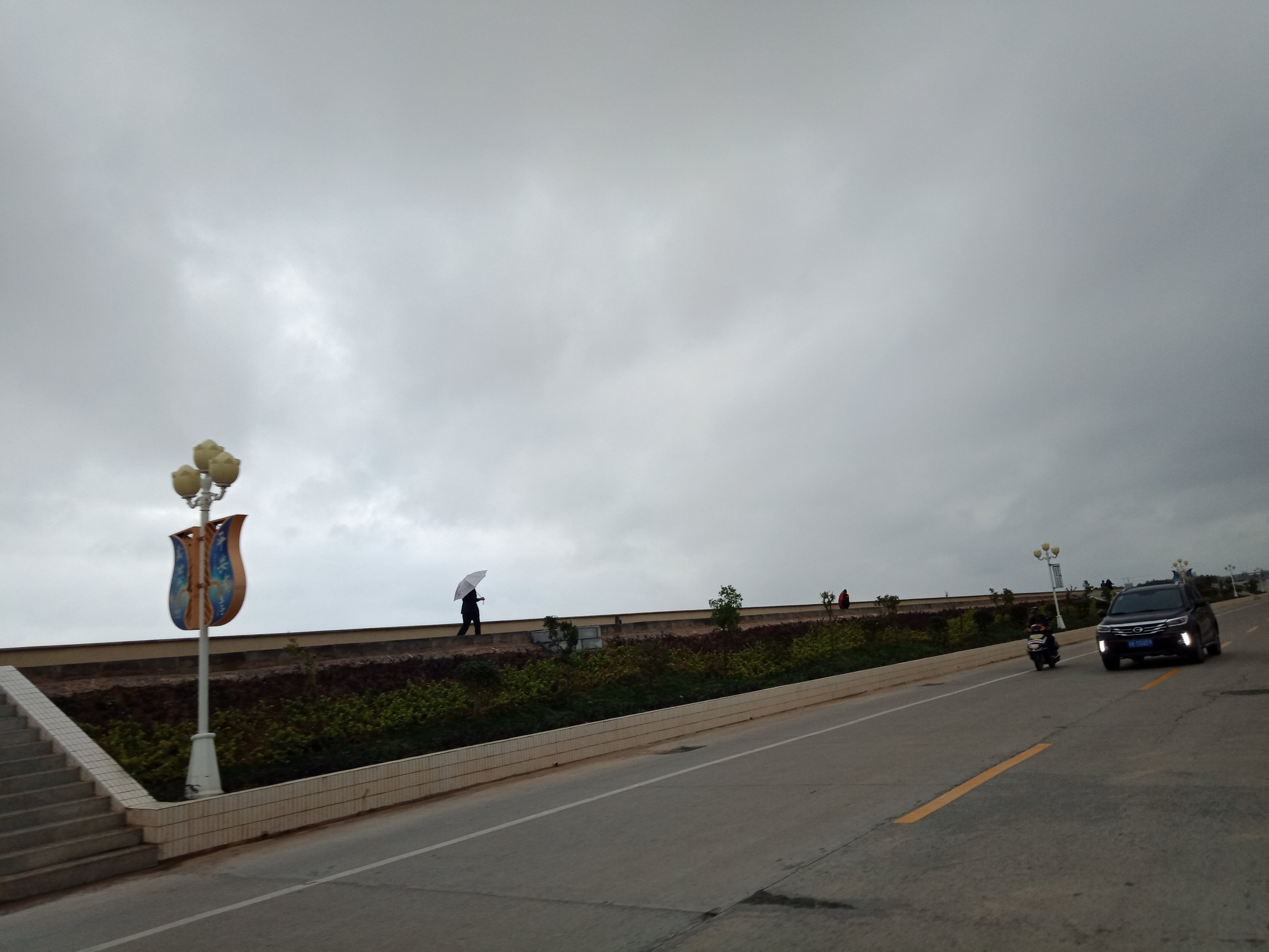 今天虽然不定时下大雨,但也有不定时好天气兼些阳光~而今天确迎来好多批尊爱的游客游人~ 先来晨跑的开始~ 驾摩途经海堤路,自有了学校组织的:学生家长志愿者,此路在上下课时畅通好多了~(其实早就知道有这些家长志愿者存在,风雨不改!!