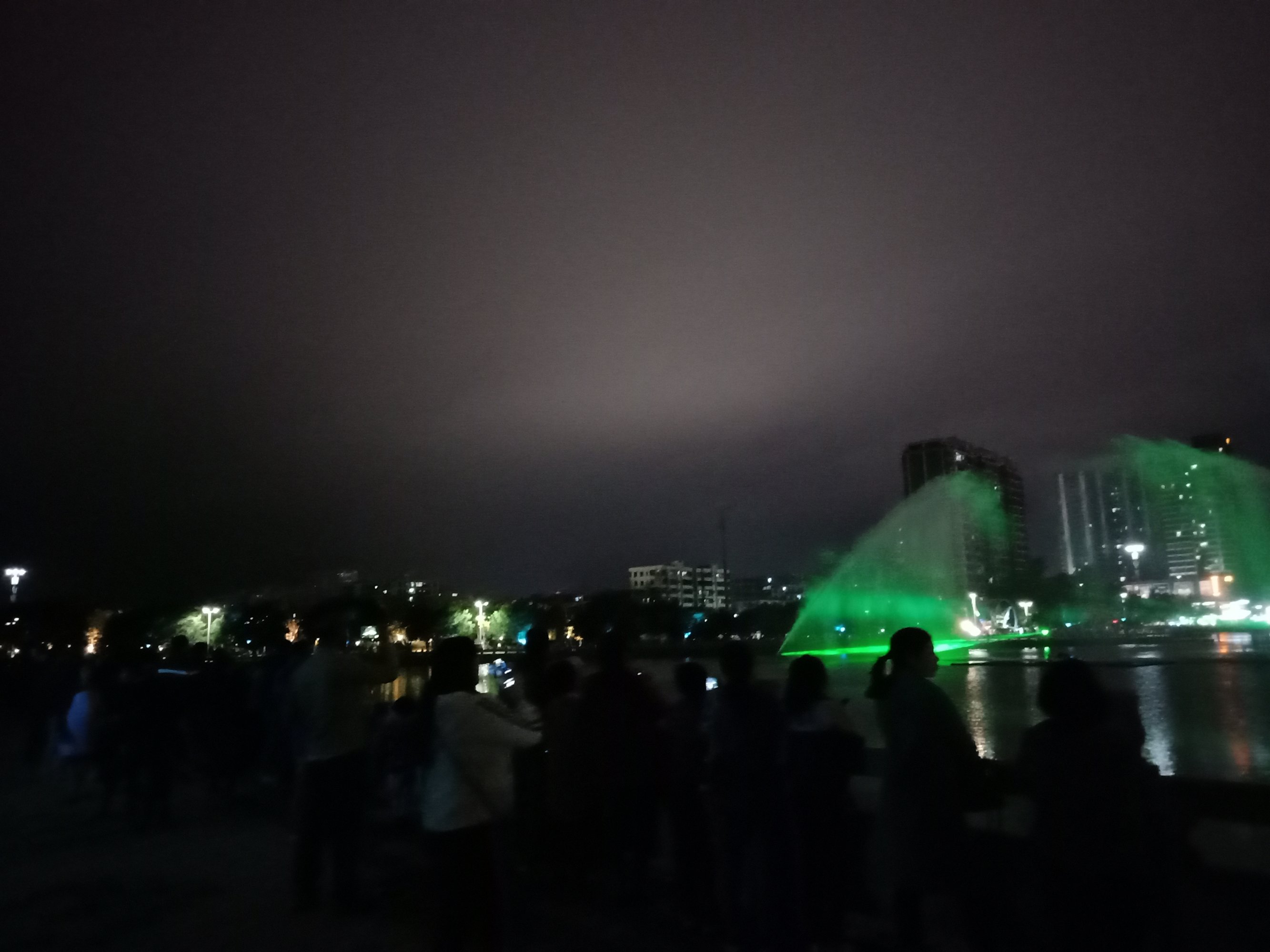 在这说下,貌似有些情节与先前的有点变化出入与改进了些,虽湖堤边有好些人围着,但相对节前,人没那么多了,但人群也还可以,(或天气等问题?),选择站的位置也好许多,况且看那水雾投像也清晰明亮~许多,不过风有点大吹得水雾有点散偏斜等,不过现场看了算行,但瓦手机拍得不行~这以上只是个人见解所观,或瓦感观观赏力不行吧,亲临其景的现场观众群众说好才是好吧?