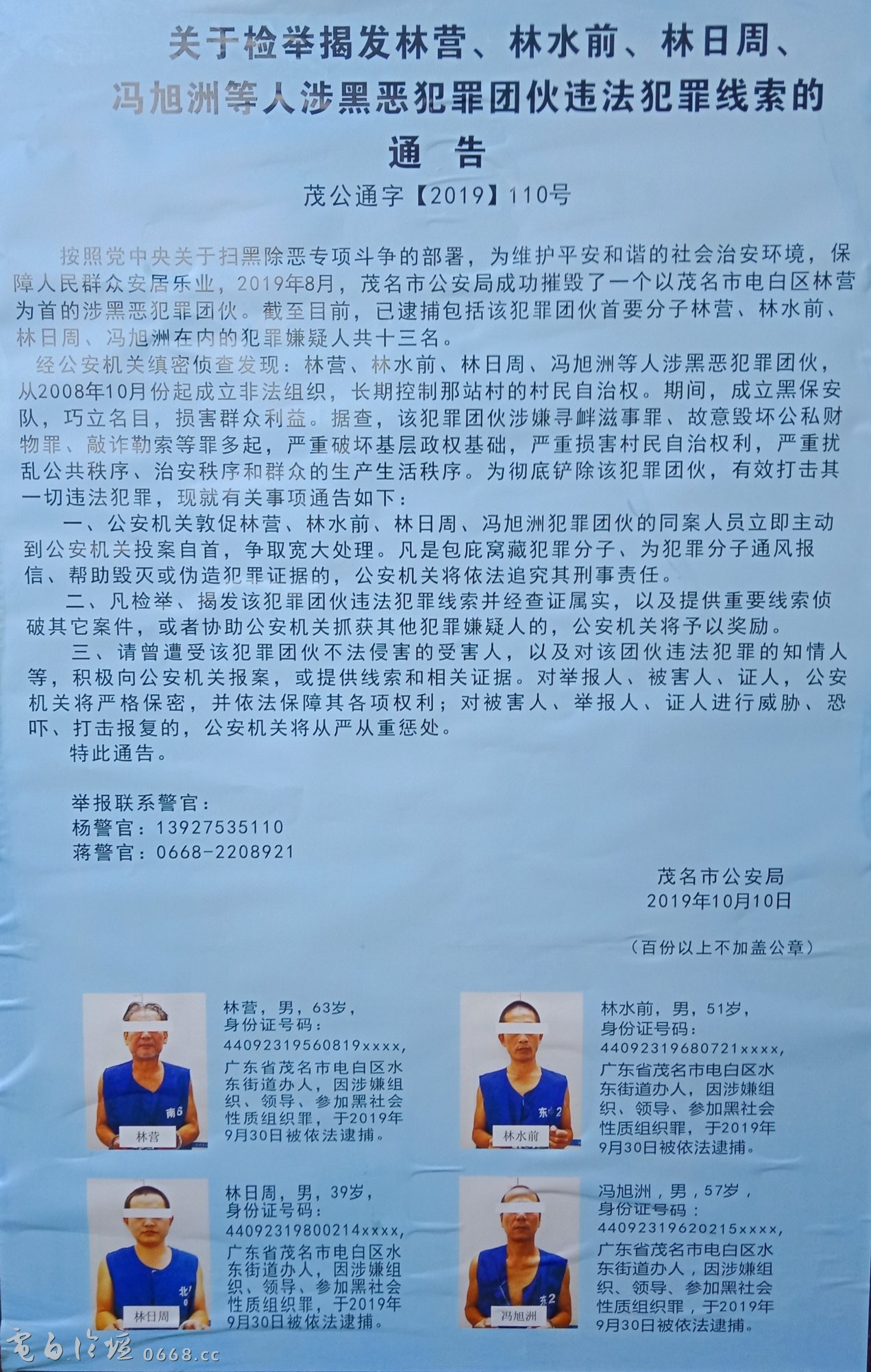 合法村霸 小学五年级 注册 2018-01-03 消息 335 反馈评分 79 点数 11 2019-09-08 #54 那站村 说: 八,应该派瓦村林营过来广隆岭做村长 点击展开... 那站村林营成为水东地区首个被捕村霸,真是可喜可贺。夺取政权敲诈勒索,出来混总要还的。