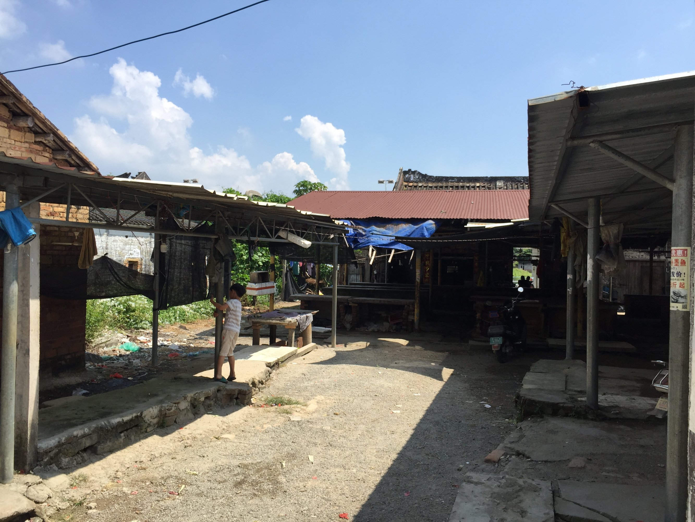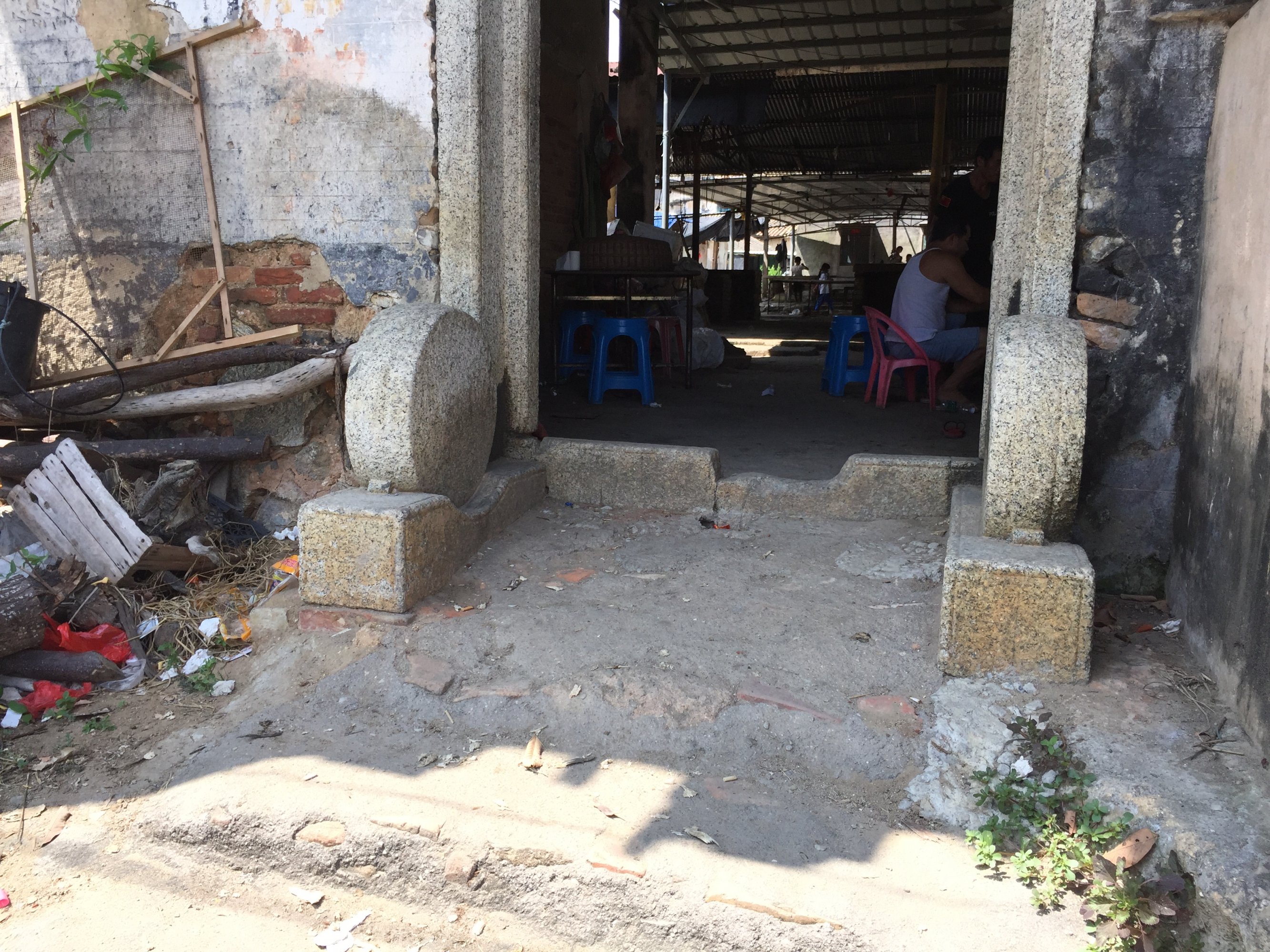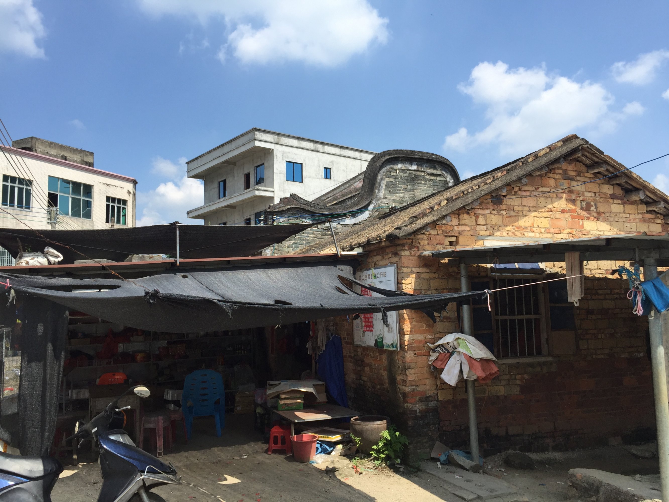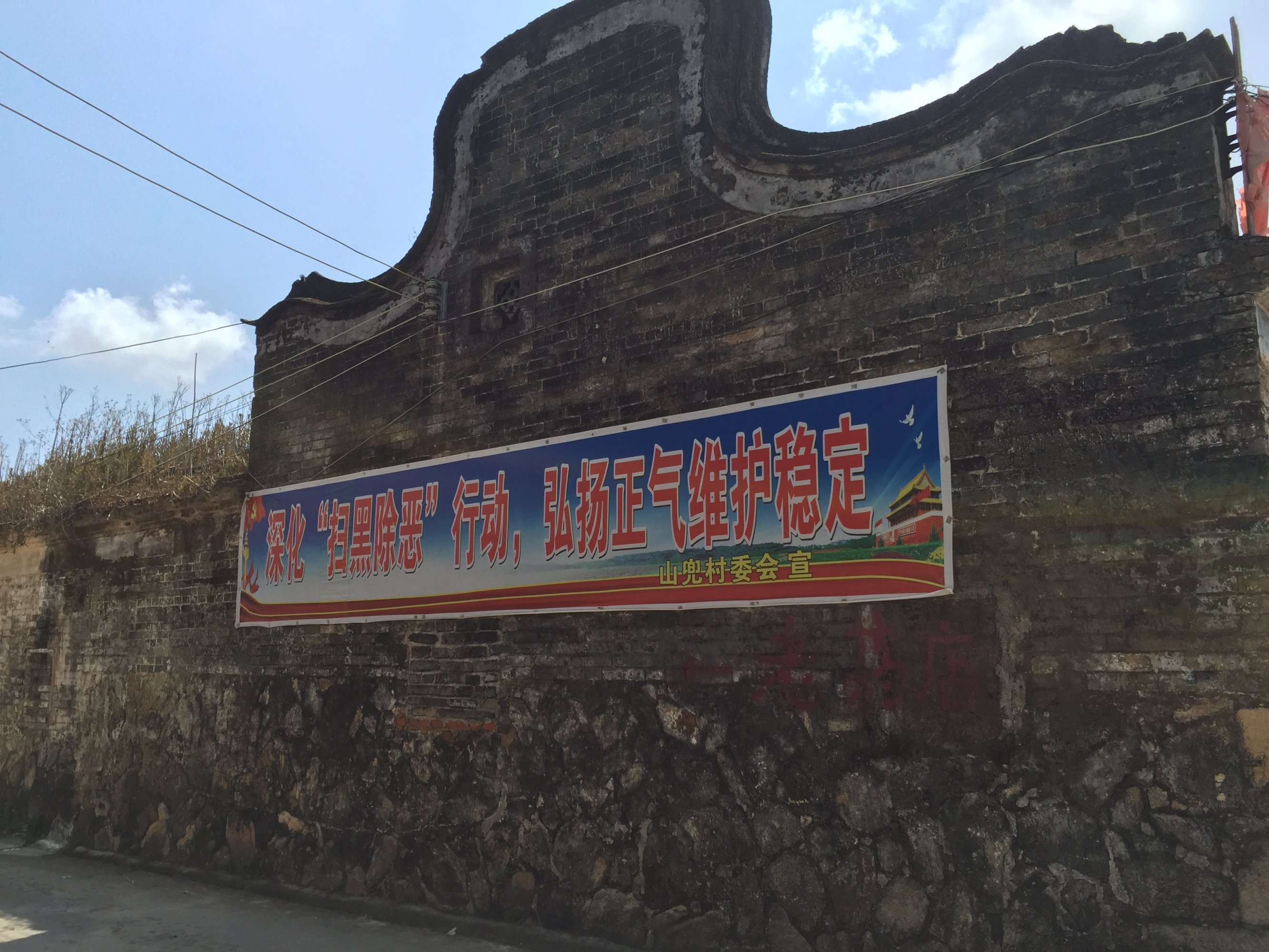 山兜村有间古老的祠堂,目测是明清时期的建筑风格,一共有三座,土改时一座做了学校,这间保持得非常完整,一间分给了村民,村民把祠堂拆了拿砖木去建了新房子,只剩下前排,平时村民在此打朴克休闲,后面的现在做了市场很久了,环境卫生一般般,