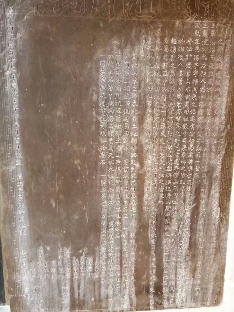 福兴祖庙碑铭最后一行文字是:大清乾隆五十七年岁次壬子仲春吉日敬立 信生邑廪陈幹庭撰记 车田周高举敬书刊