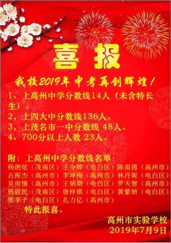 电白啊电白 说: 这样招生政策下,只会有更多的600分的学生跑到高州中学。电白一中考不上,电白民校没信心,想去仅剩一点名声的电海也没选择的权利。只能去高州了。看这份名单就知道电白学生在整个高州中学所占的比例不低。把春华的高中办出名气来,也是一个不错的办法。但愿学费不要太高,否则学生又跑了。 点击展开... 电白一中正在逐步恢复元气,今年招生情况大大超出预期,大家放心斩鸭!