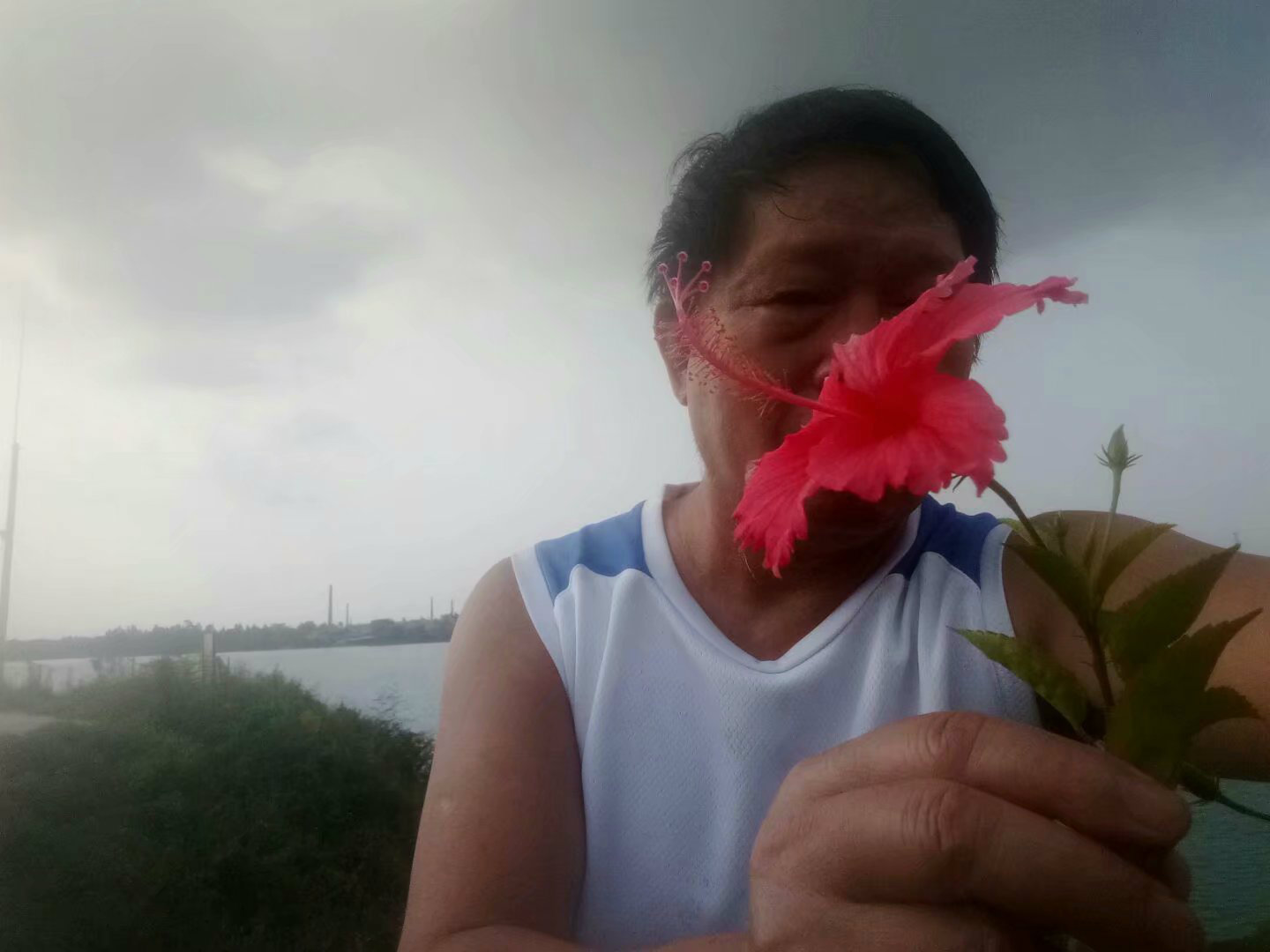 在露天矿公园捡到一朵花,第一次见到这种花朵,红艳艳的。