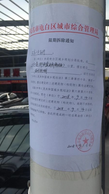 2018年 9月 11日 电白城建局在现场回复大众群众 三天内全部拆完整个违建的车城 现在一整年过去了 比原来更好看更漂亮了 事实也应正了群众口中所说的 城建局的某个副局长有干股份的传闻 群众百姓的违建 当时候叫给一个星期自行拆除都不行 那么铁的手腕 我该怎么看待你啊 电白区政府 电白城建局