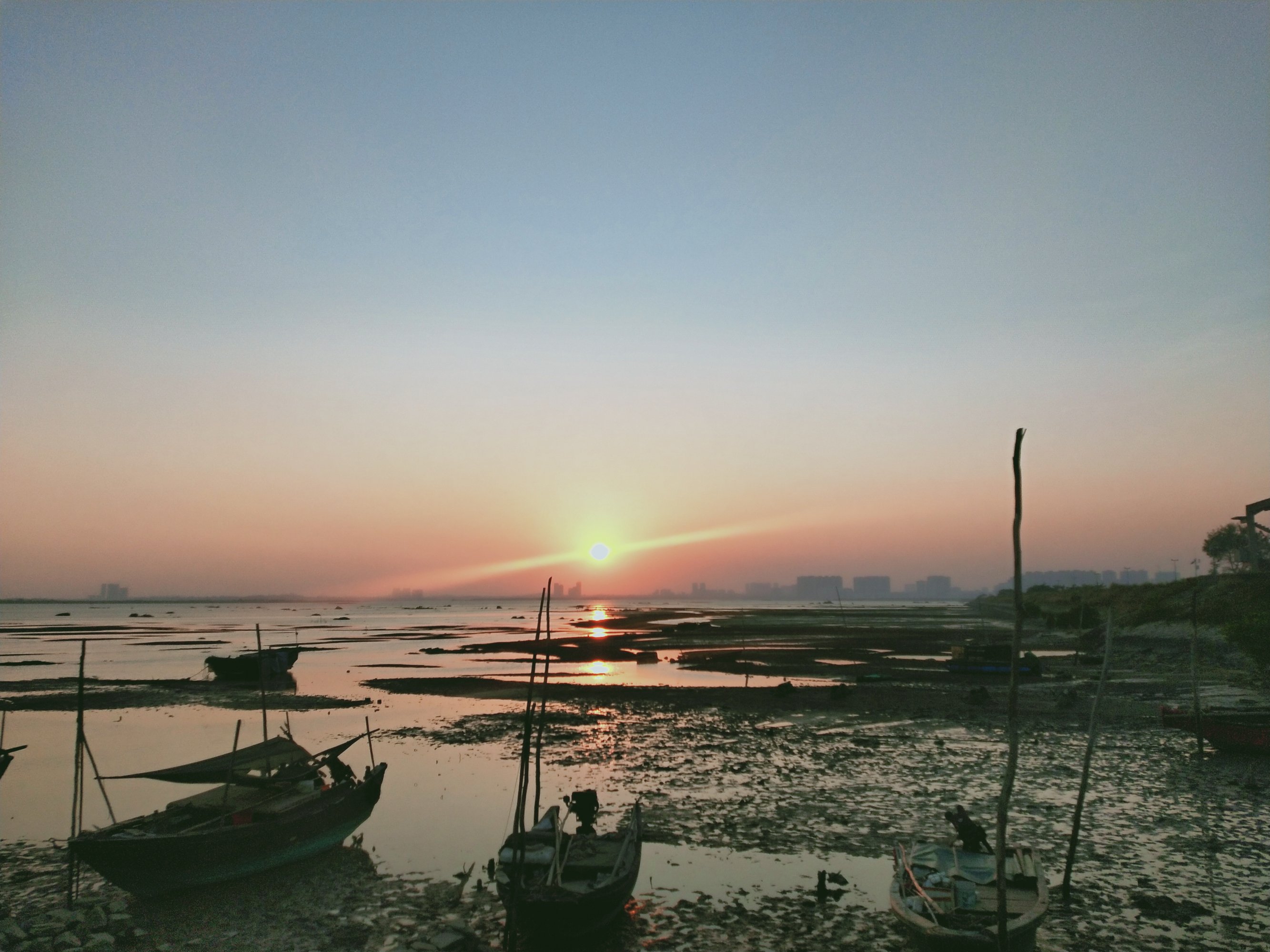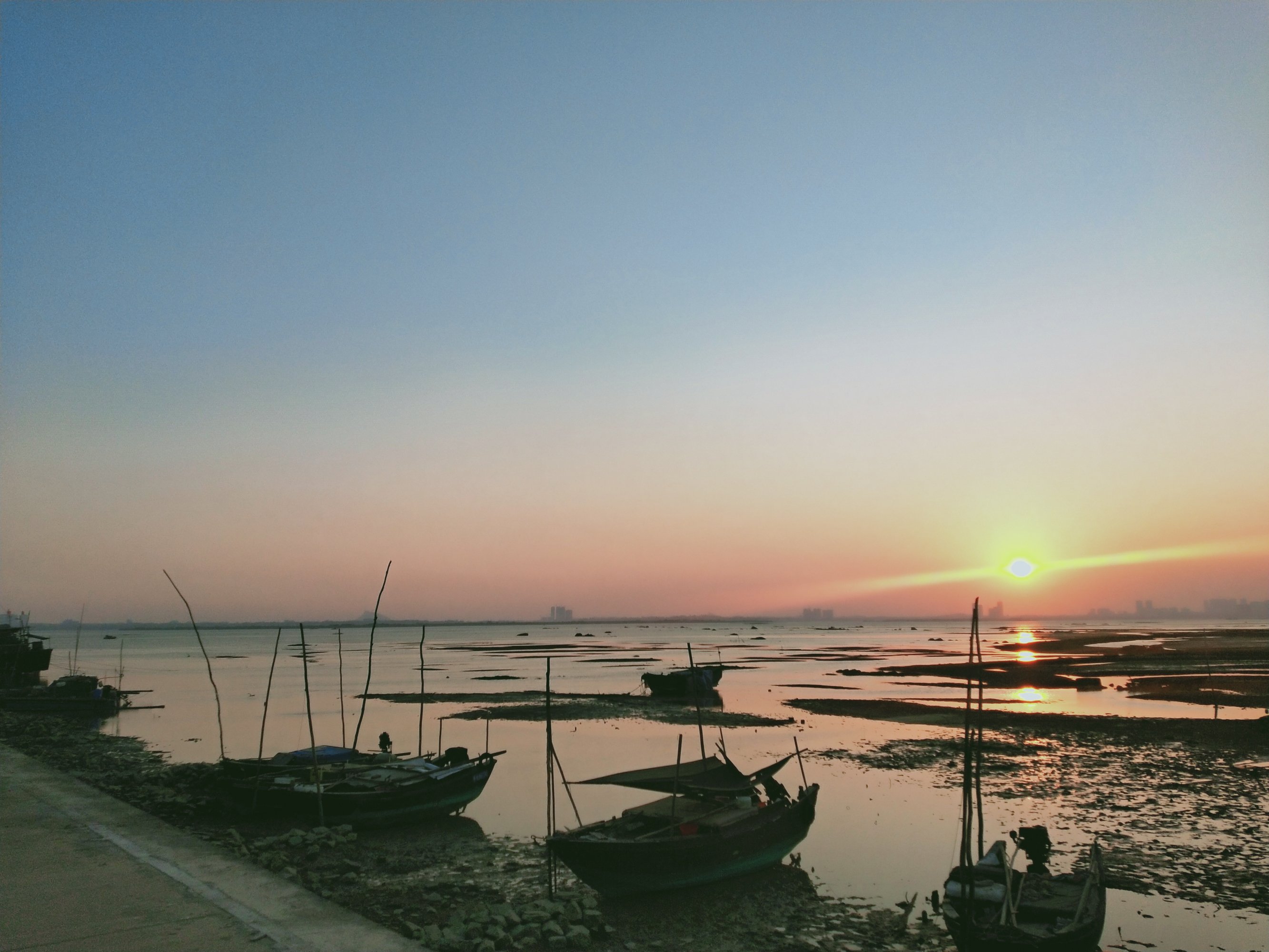 我在黄昏时分到达陈村码头,只见有几十艘渔船停泊于此,有一渔民在用水管冲洗船壳,另有二三人在看风景,我沿着堤坝行了2里路,两边杂草丛生,听说着潮水时堤坝上排满钓客,时有胶腊鱼。