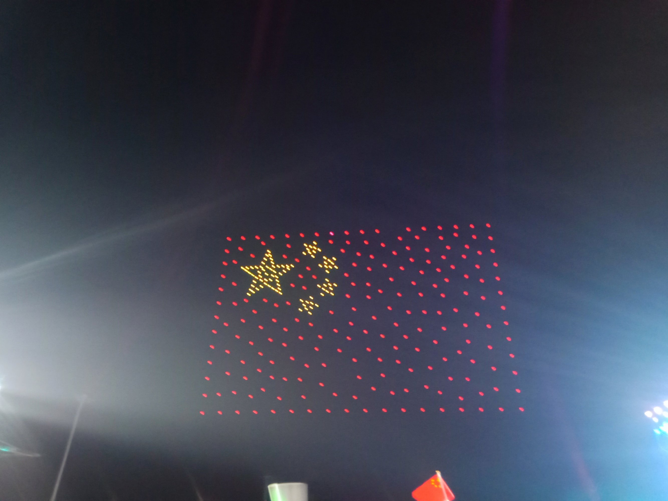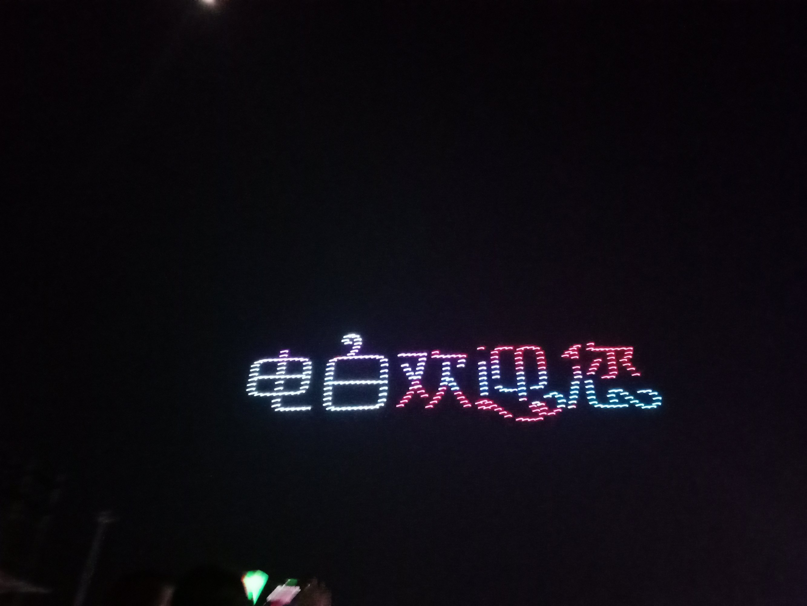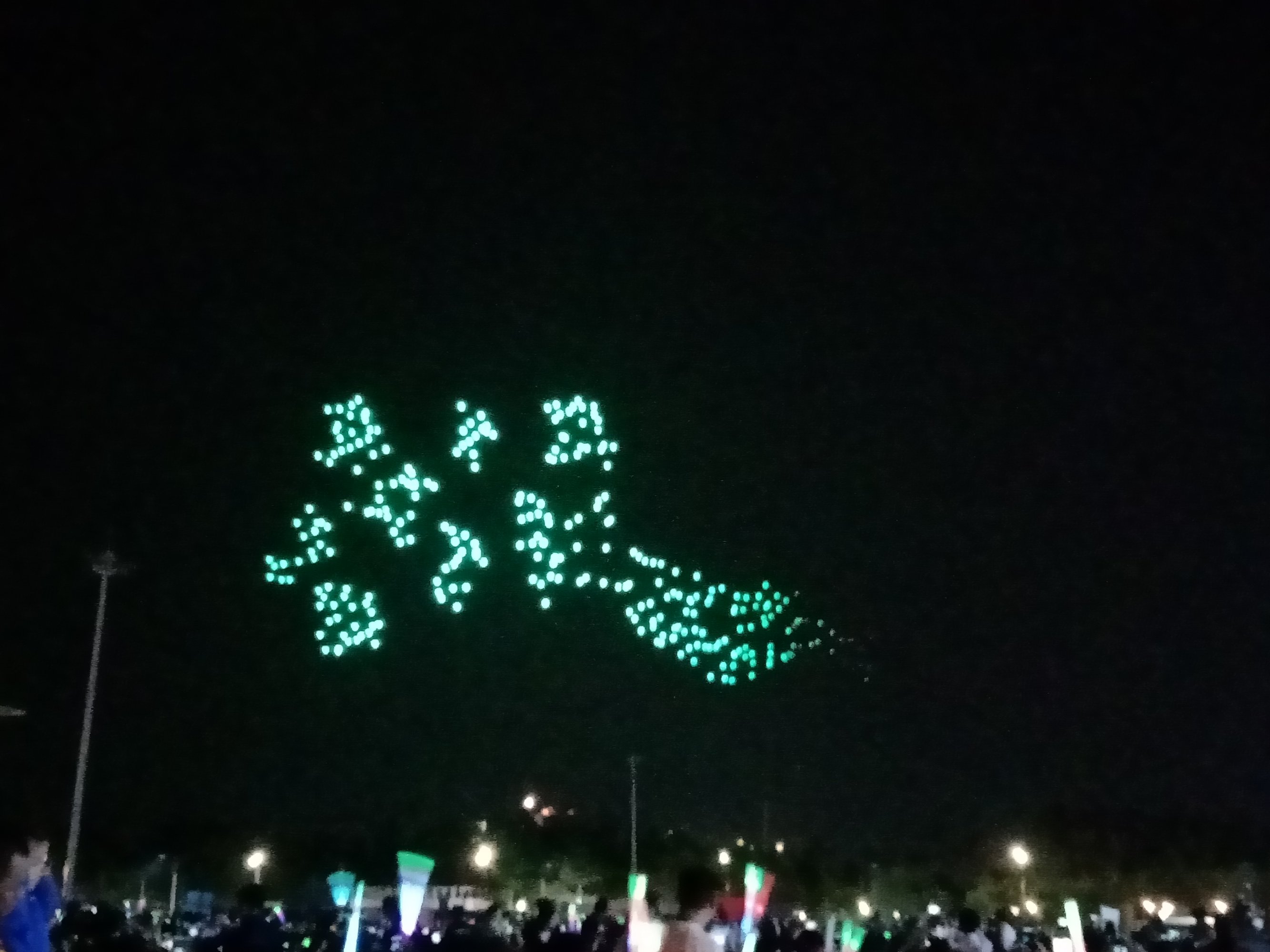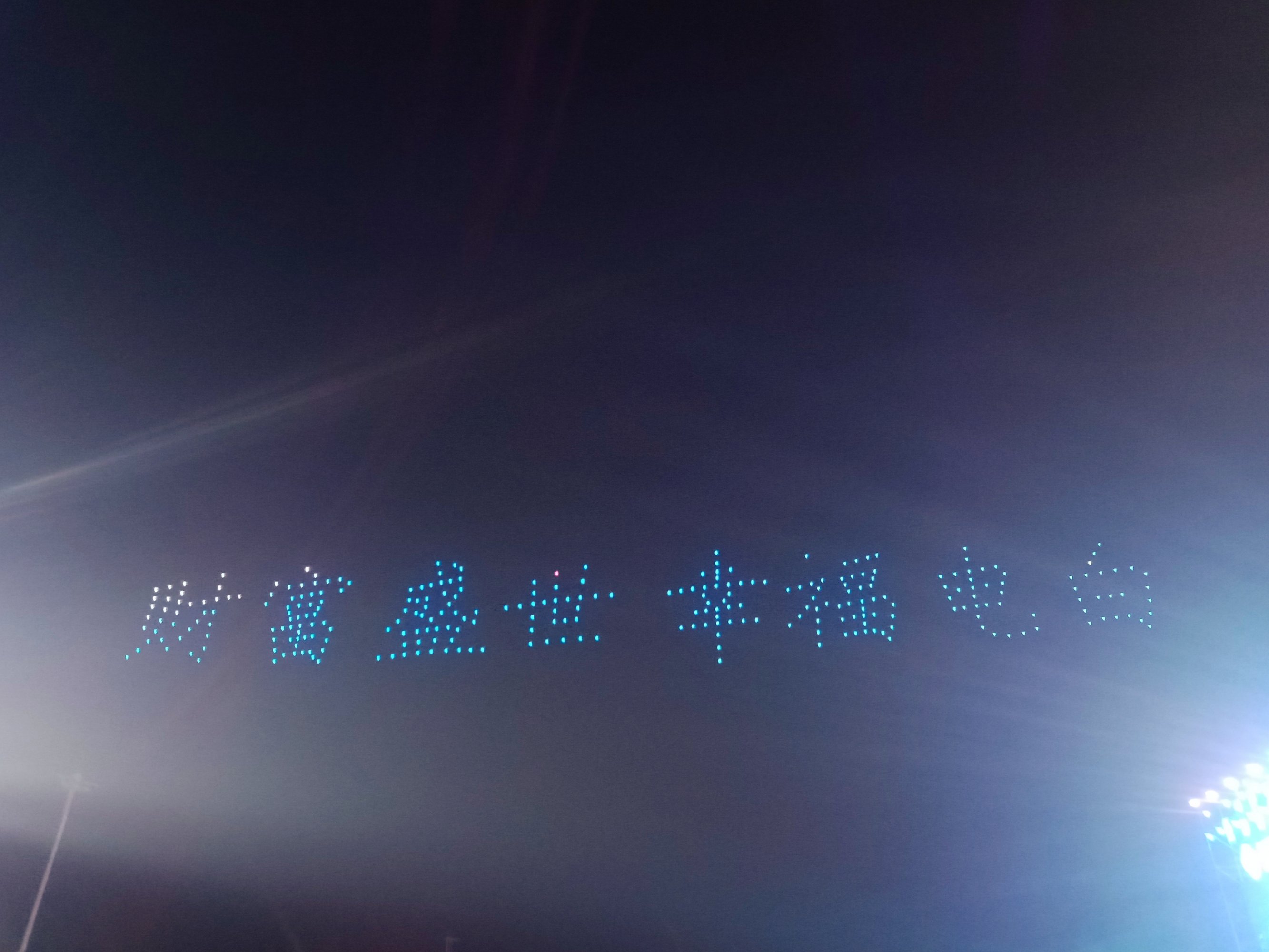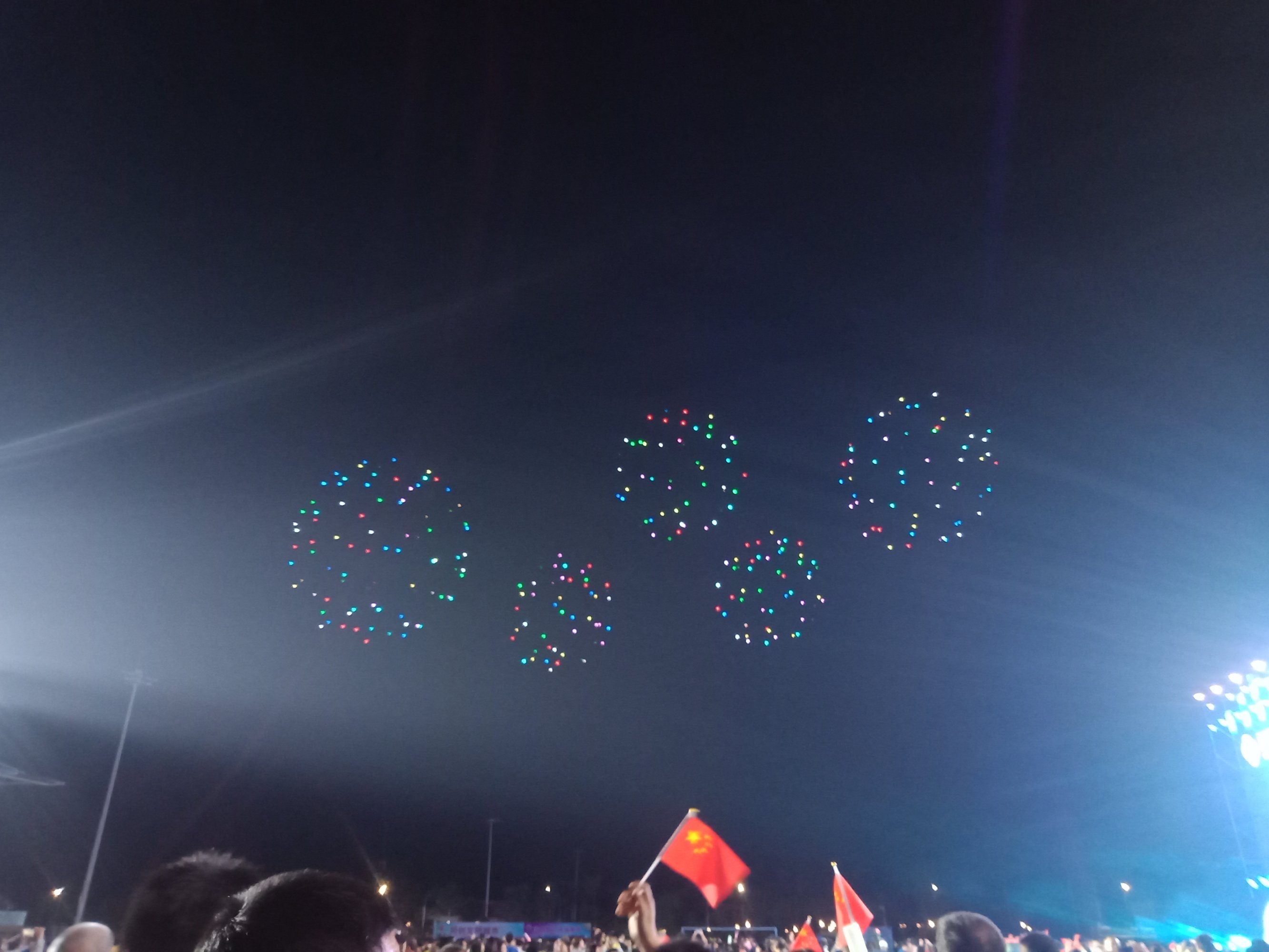 接昨晚晚会的情景,随主持人说晚会接近尾车,而这时天上又升起无人机景像