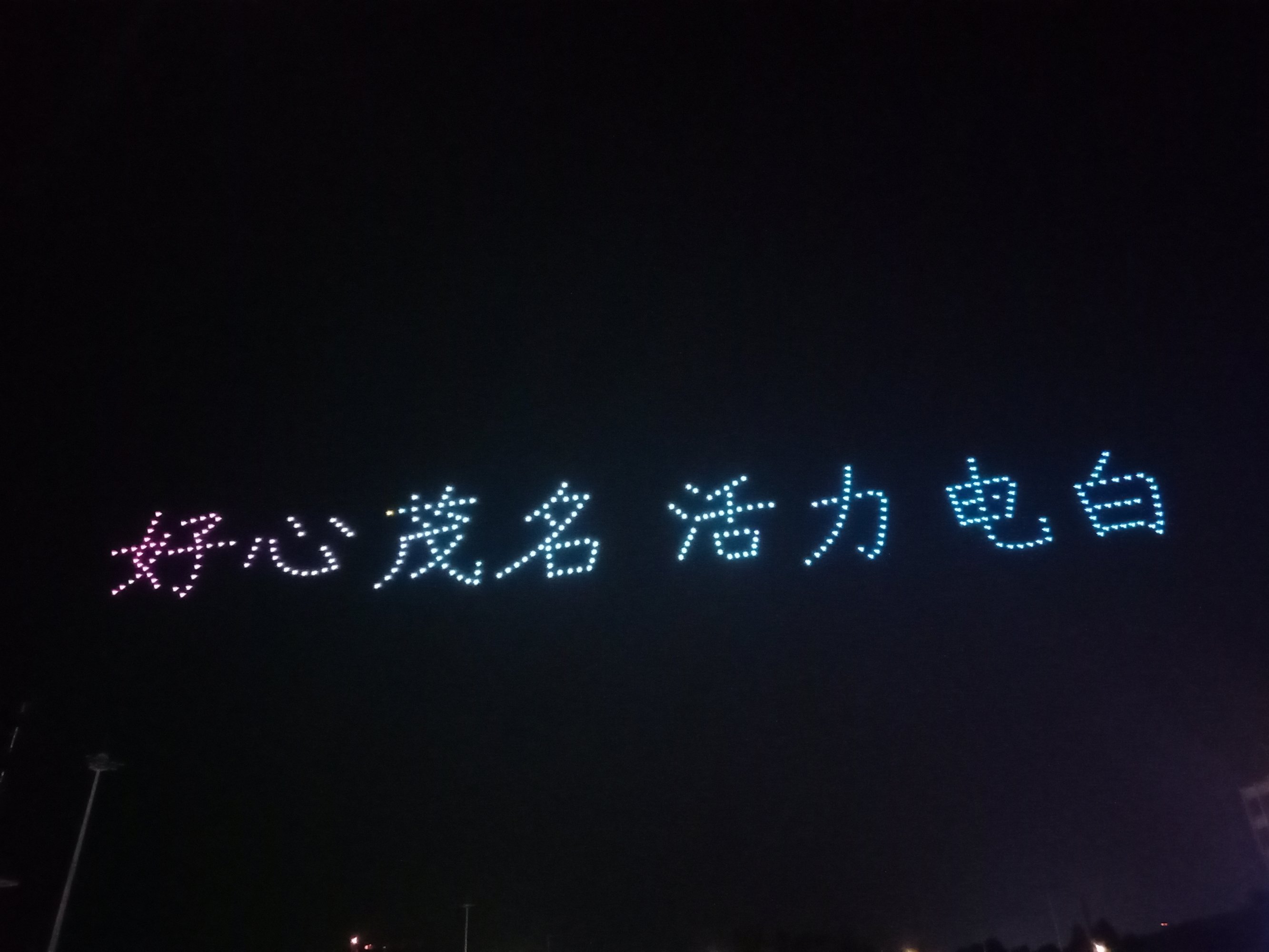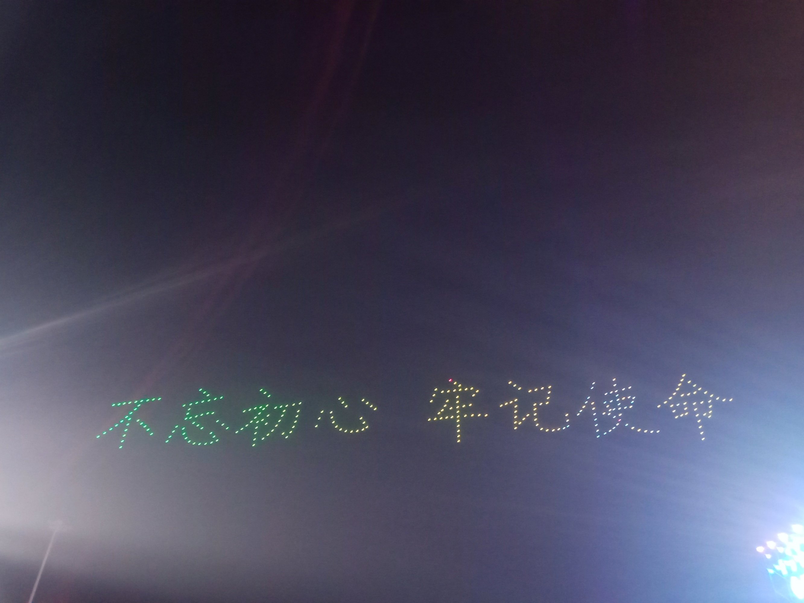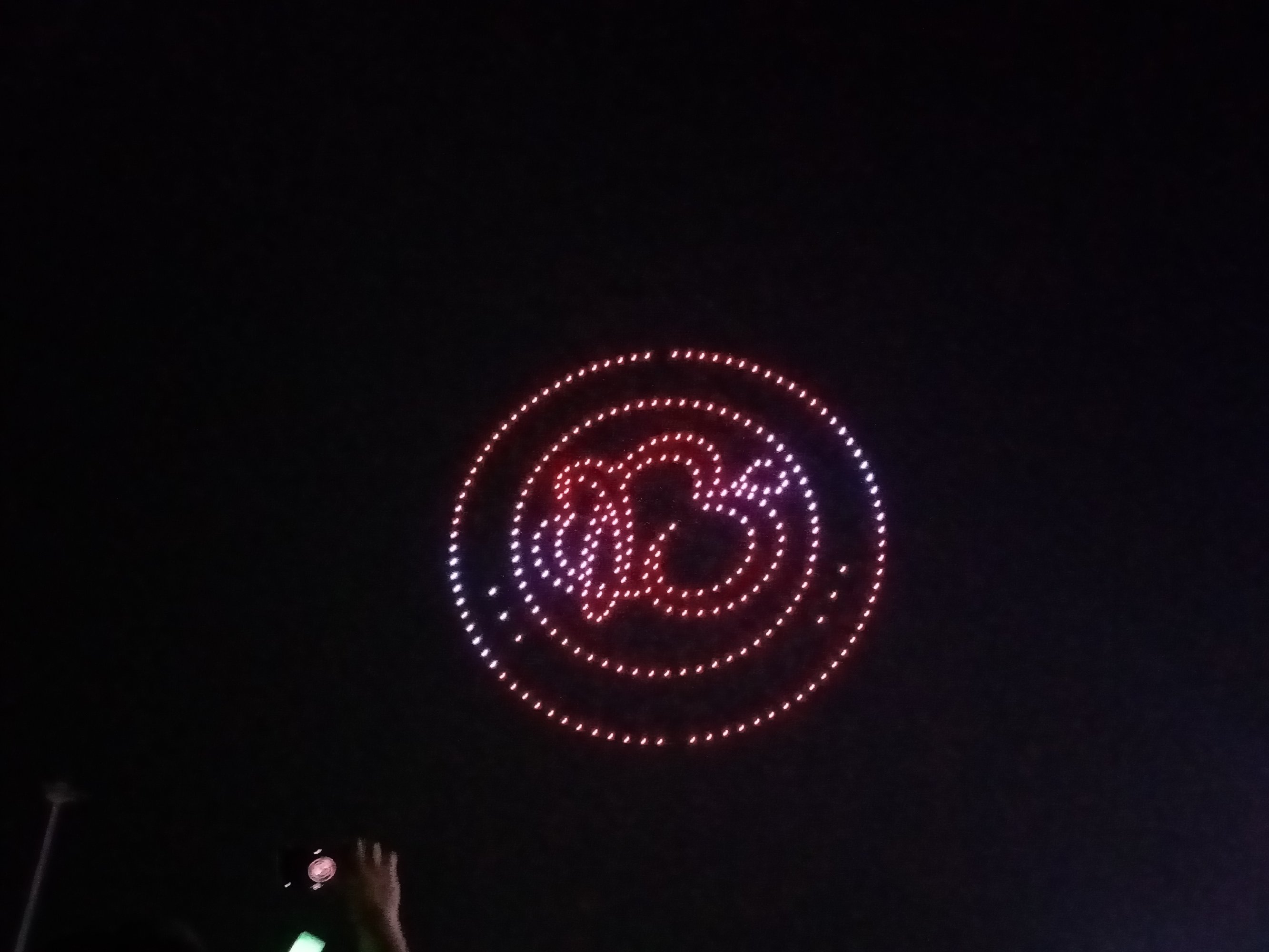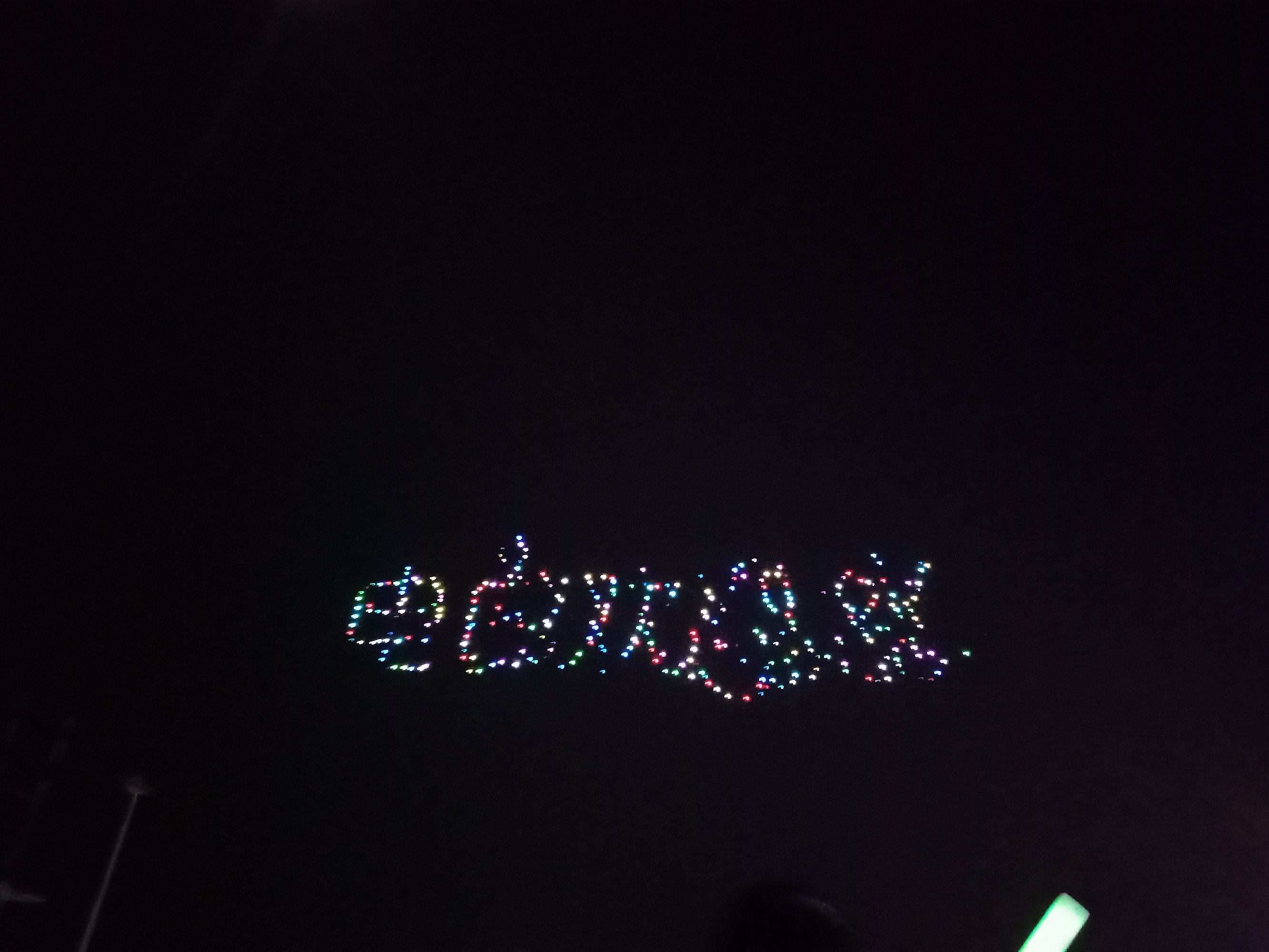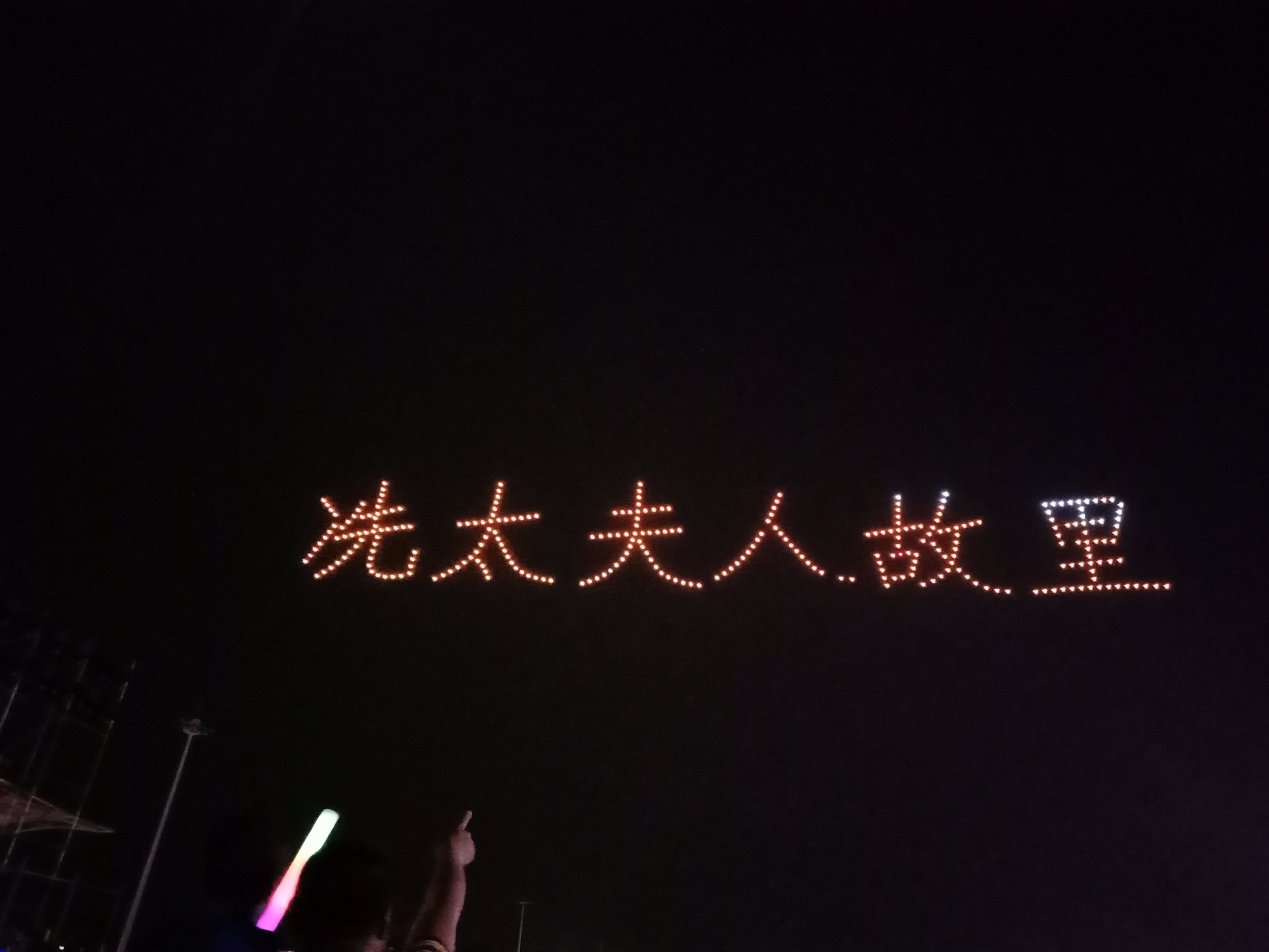 接昨晚晚会的情景,随主持人说晚会接近尾车,而这时天上又升起无人机景像