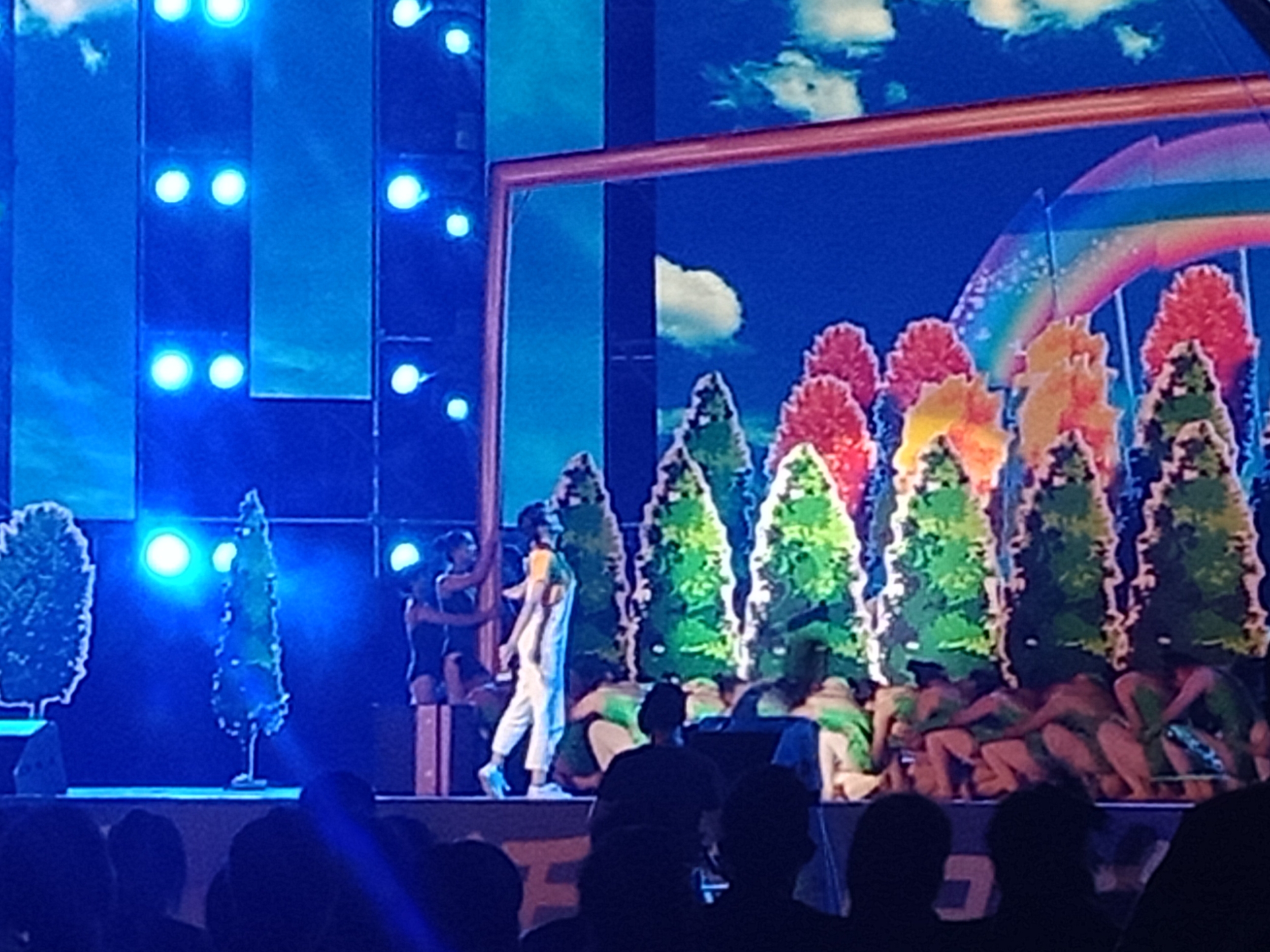 那叫祖海的出来,像唱了三首,有首是什么魅力中国城所唱,虽没下去与观众握手互动,但有两边走动!