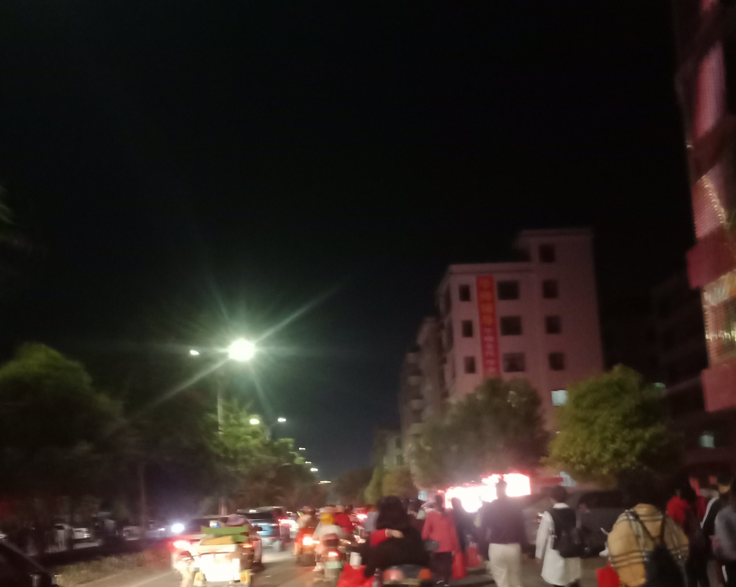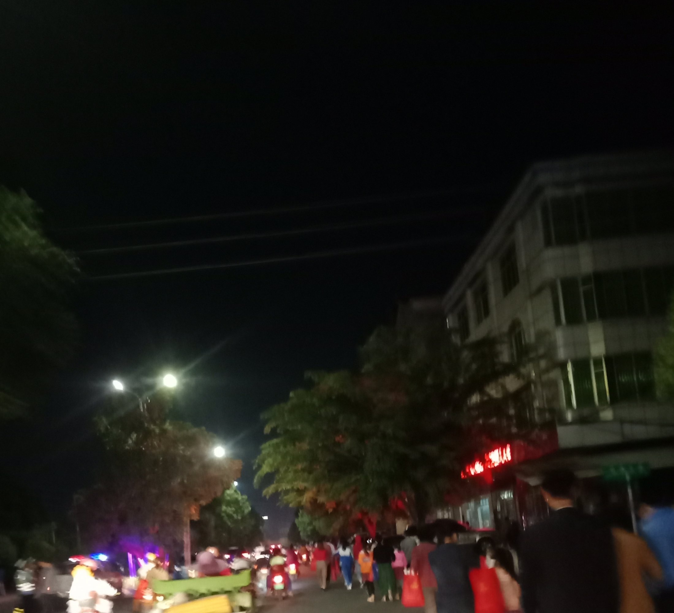 晚会已基本结束,但还有好多观众与演员们在拍照久不退场,而无人机也降落地上,一路走出体肓路,车流人流不间段,车走一边道,人走一边道,直沿至迎宾路,还热闹过学校上下课:biggrin: