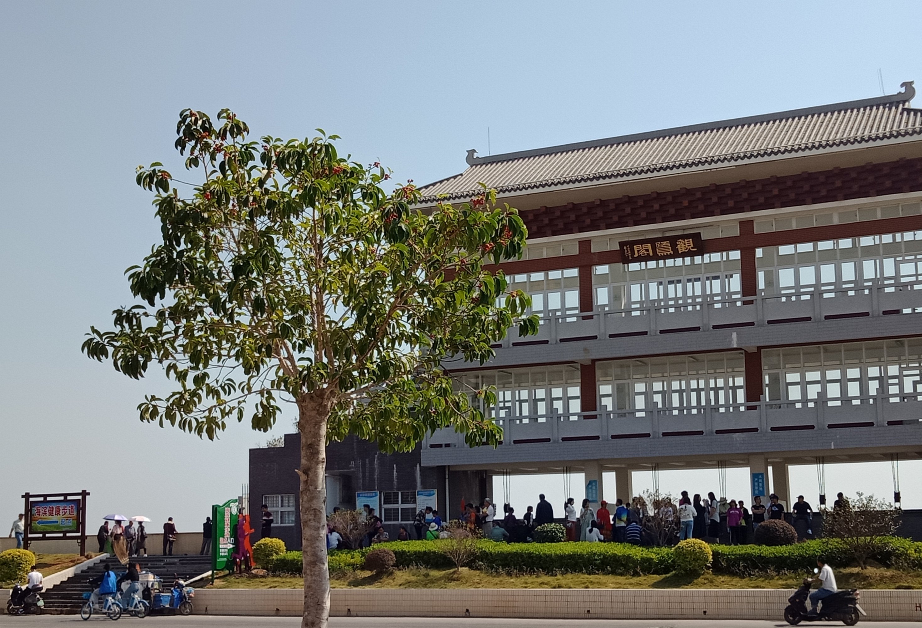 不过真正的旅游还要期待博贺湾那的海昌海洋公园与这边水东湾新城南海半岛的华侨城的开发建设等,但看着海滨大桥这边的环湾路与海滨路油地公园或桥头那边的滨湾路跨桥再与观鹭阁直望排洪河直至迎宾路万达广场的向洋大道等等,也是没气了,凉风有信,秋月无边