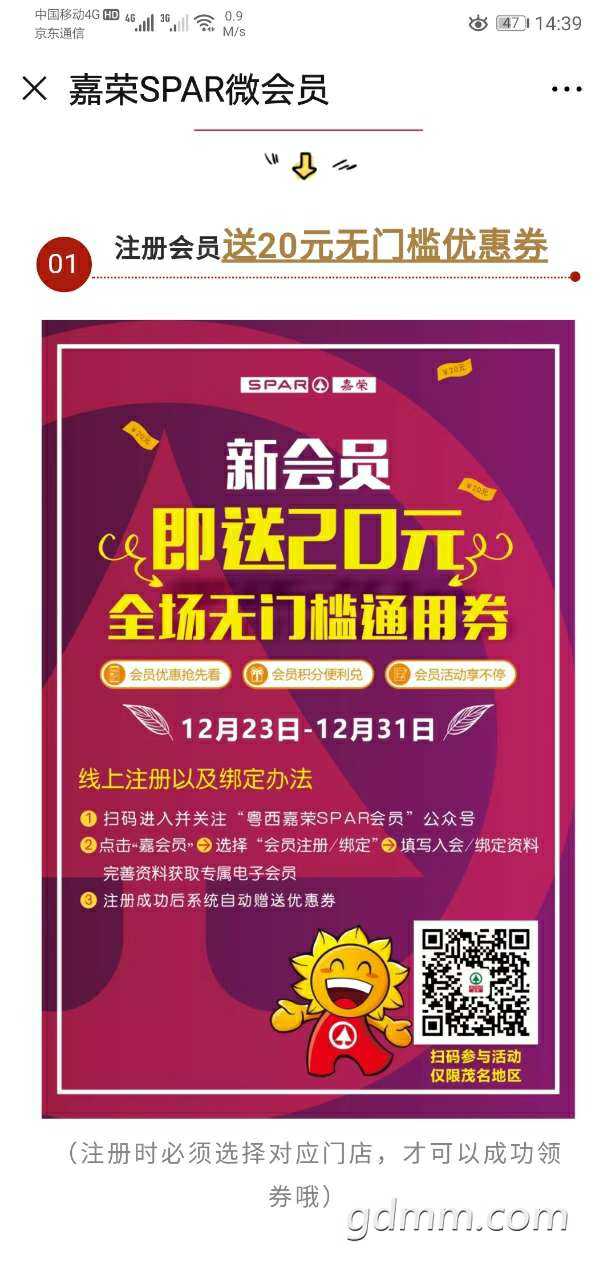 注册会员送20元无门槛优惠券