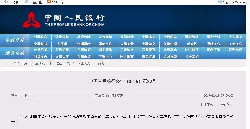 该公告的发布依据是,中国人民银行在2019年12月28日发布的〔2019〕第30号公告。