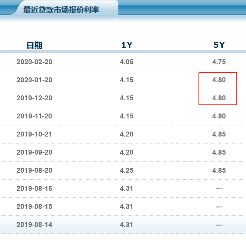 这个“差值”一律和去年12月的5年期LPR,即4.80%计算。