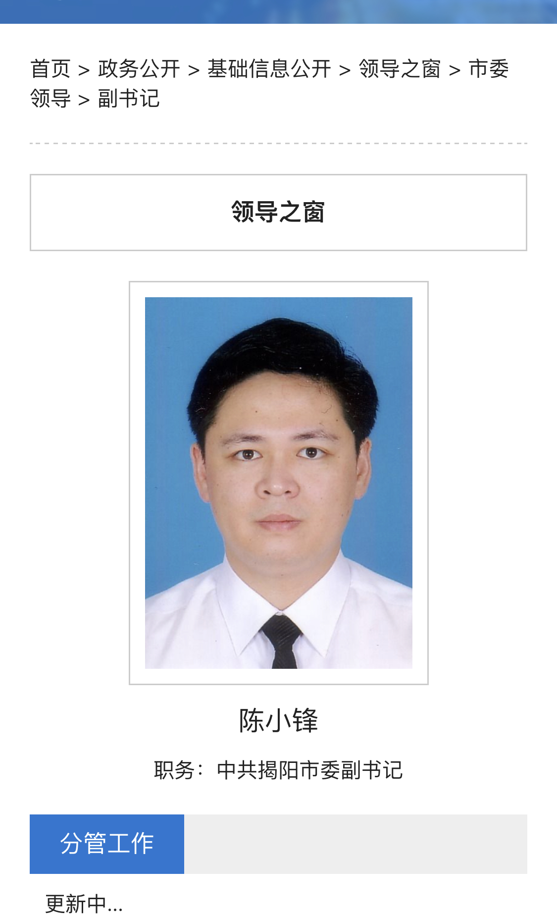 新闻 陈小锋书记今天已经到揭阳市报到!
