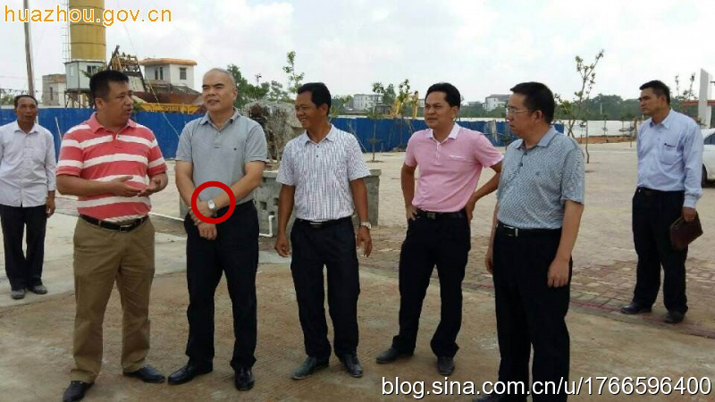 附8,去年4月被我用一条微博揭露之后,“表叔”于去年和今年的本月在化州陪同全都戴着手表的茂名市领导视察时,竟然一反常态地裸露着双手了: